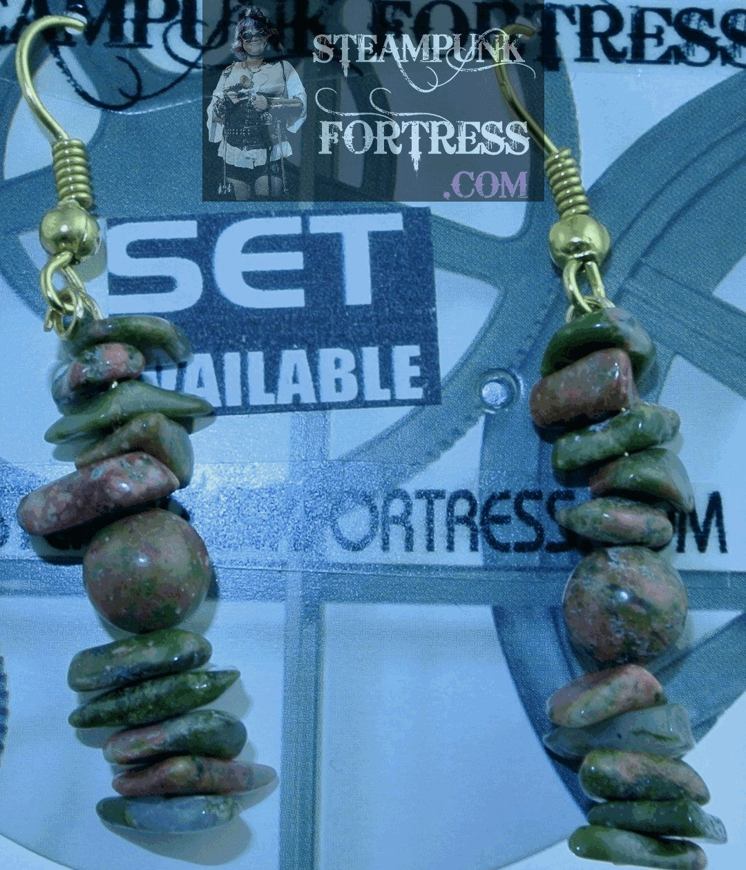 GOLD UNAKITE 10 CHIPS 1 ROUND GEMSTONES STONES PIERCED EARRINGS SET AVAILABLE STARR WILDE STEAMPUNK FORTRESS