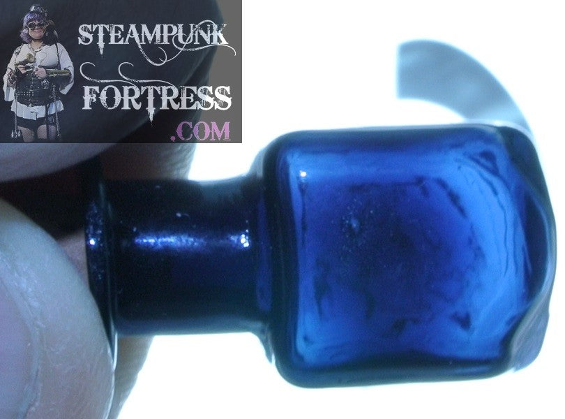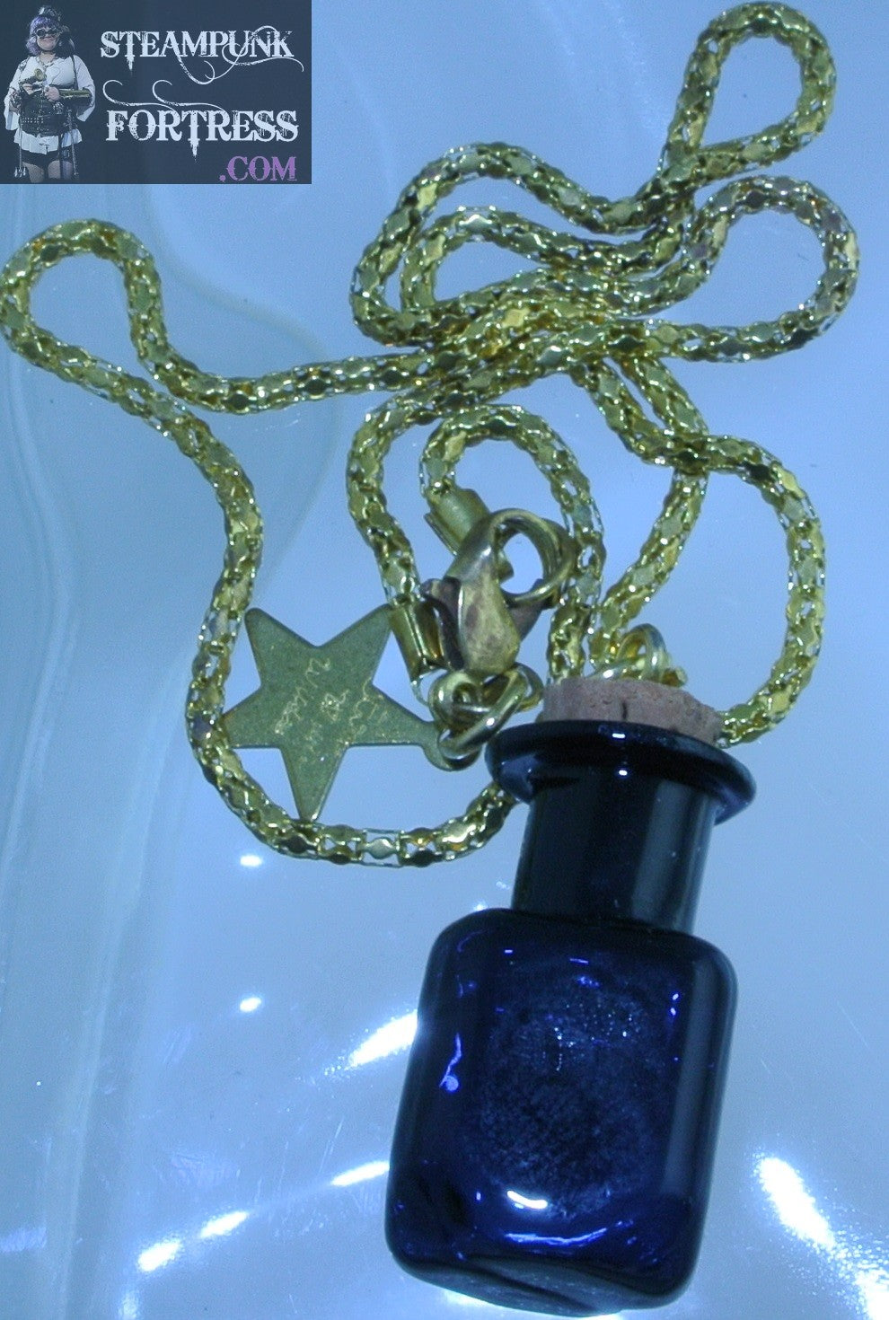 GOLD VIAL BLUE GLASS SQUARE BOTTOM CORK TOP NECKLACE STARR WILDE STEAMPUNK FORTRESS