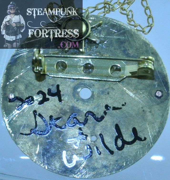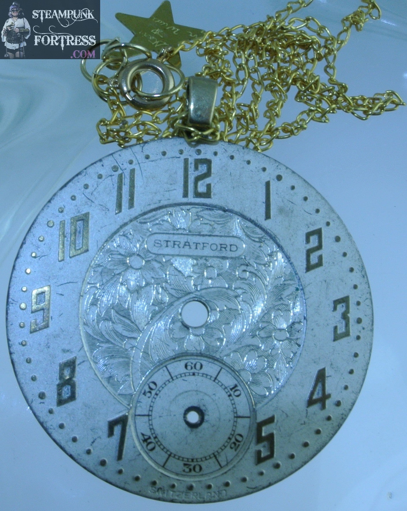 GOLD VINTAGE GENUINE STRATFORD CLOCK WATCH FACE DIAL PIN BROOCH NECKLACE STARR WILDE STEAMPUNK FORTRESS