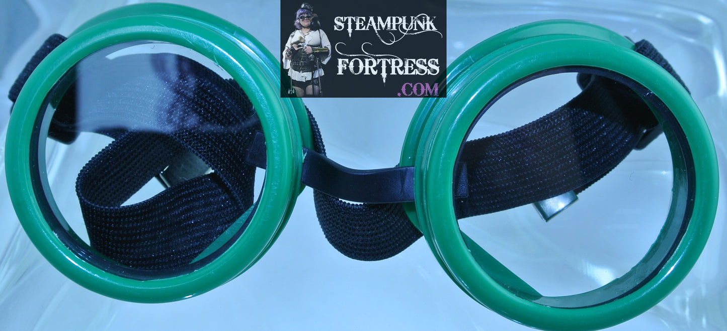 GREEN MEDIUM GOGGLES CLEAR LENS ADJUSTABLE BLACK ELASTIC STRAP COSPLAY COSTUME- MASS PRODUCED