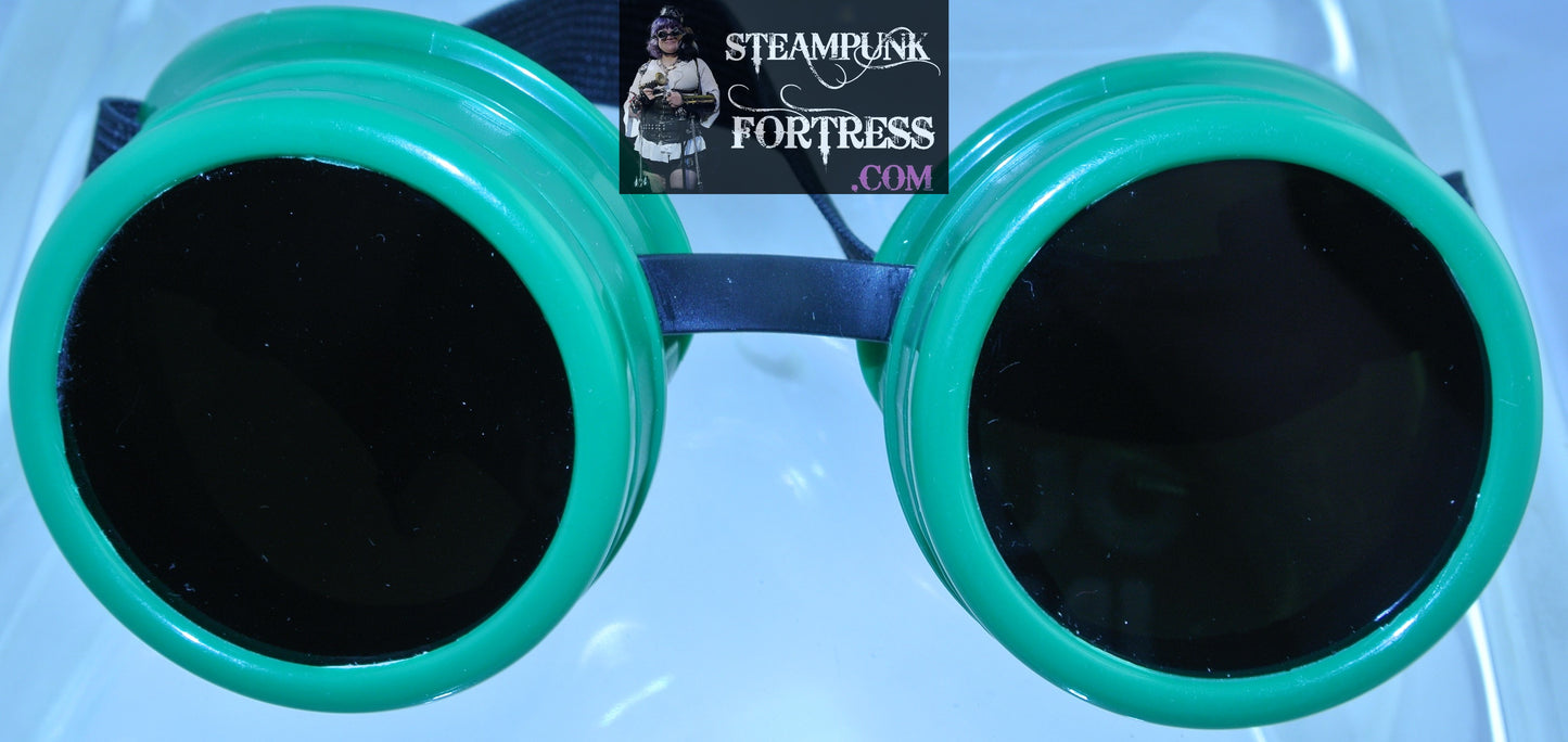 GREEN MEDIUM GOGGLES GREEN LENS ADJUSTABLE BLACK ELASTIC STRAP COSPLAY COSTUME- MASS PRODUCED