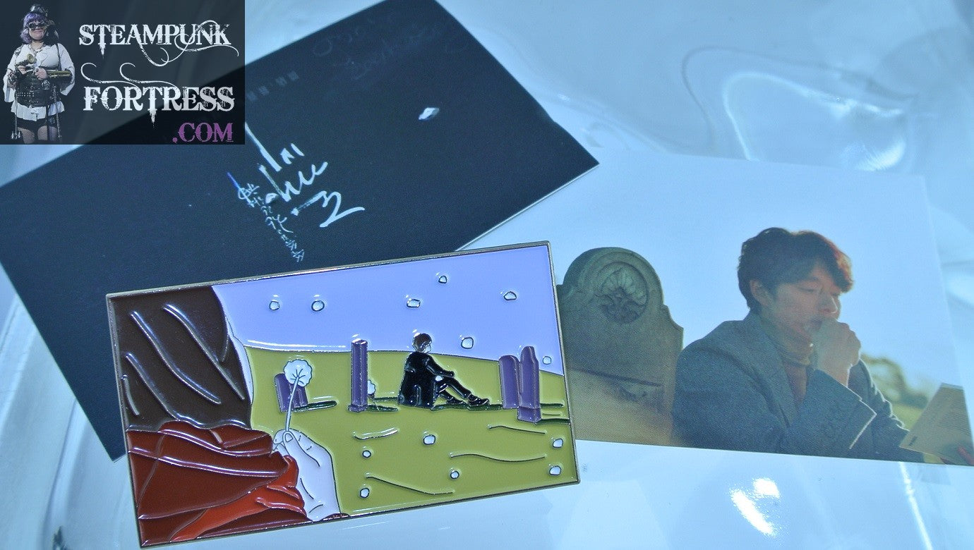 This is a beautiful gold enamel pin featuring Guardian the Great and Lonely God aka Goblin K-Drama Korean...Starring Gong Yoo, Lee Dong Wook and Kim Go Eun...cemetery far...comes with card and photocard...#7196