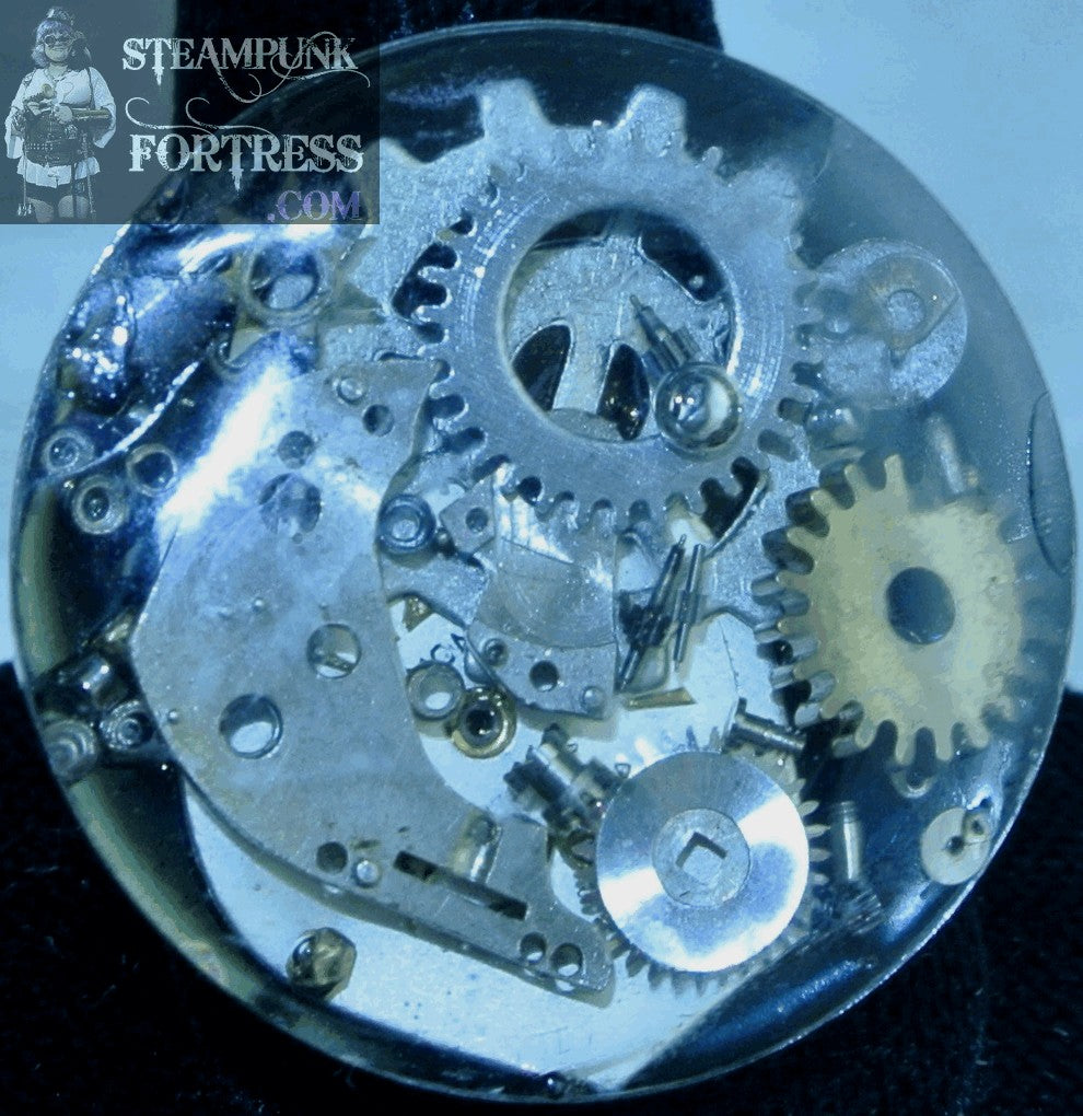 GUNMETAL 1" ROUND WHITE FACE DIAL AUTHENTIC GENUINE CLOCK WATCH SILVER GEARS ADJUSTABLE RING STARR WILDE STEAMPUNK FORTRESS