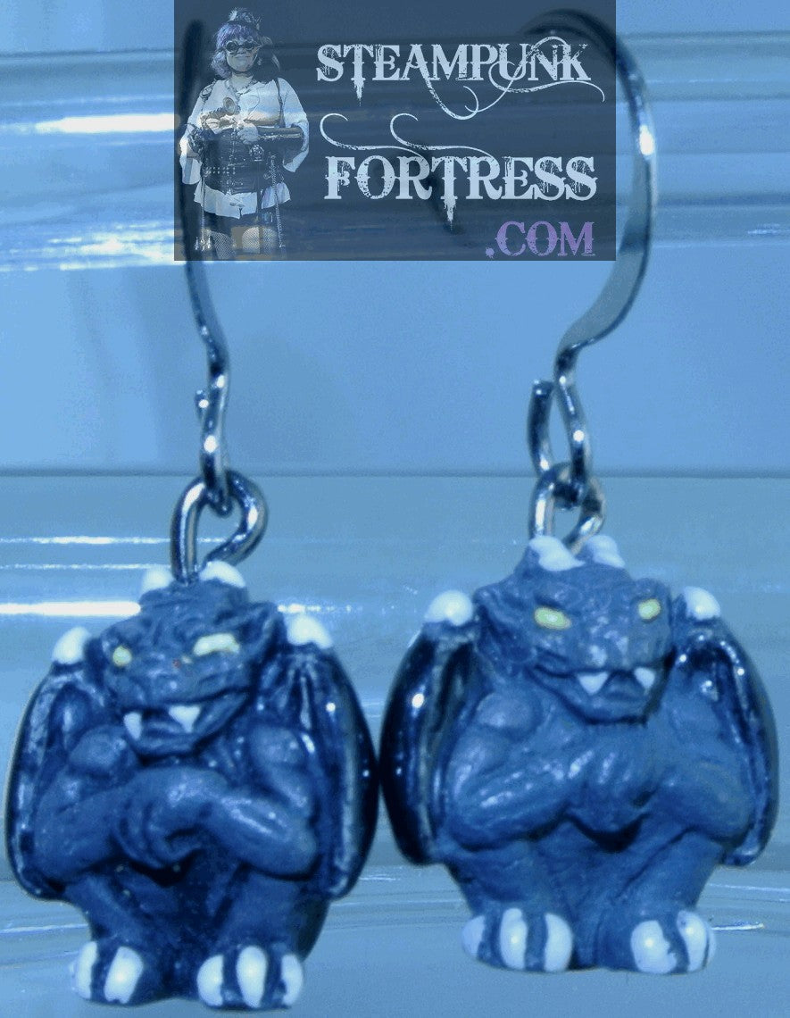 THIS IS A FABULOUS HANDMADE CUSTOM MADE STEAMPUNK DIESELPUNK CYBERPUNK, MEDIEVAL, RENAISSANCE, VICTORIAN, RENAISSANCE, EDWARDIAN, COSPLAY, COSTUME, SDCC, COMIC CON….. PIERCED EARRINGS....GUNMETAL....1 GREY GARGOYLE ON EACH HOOK.......#5752