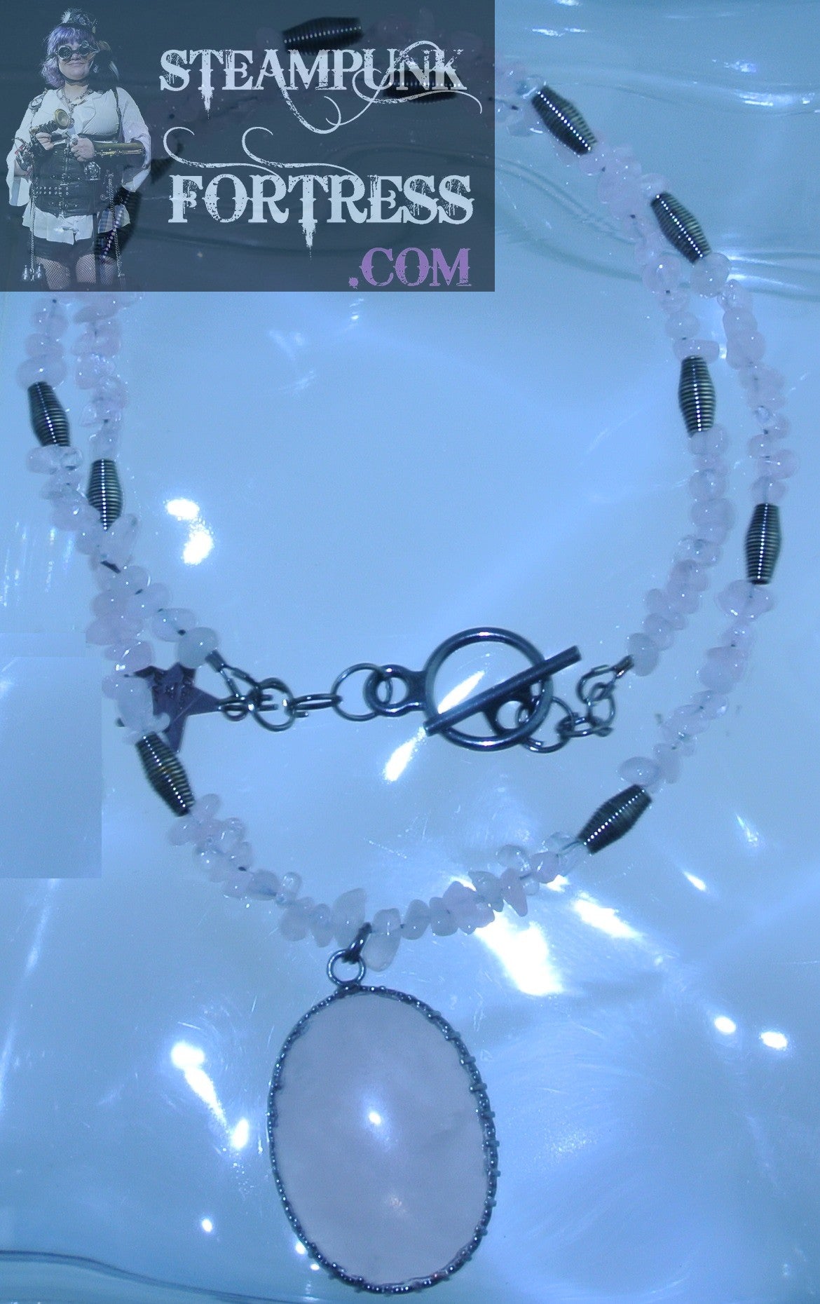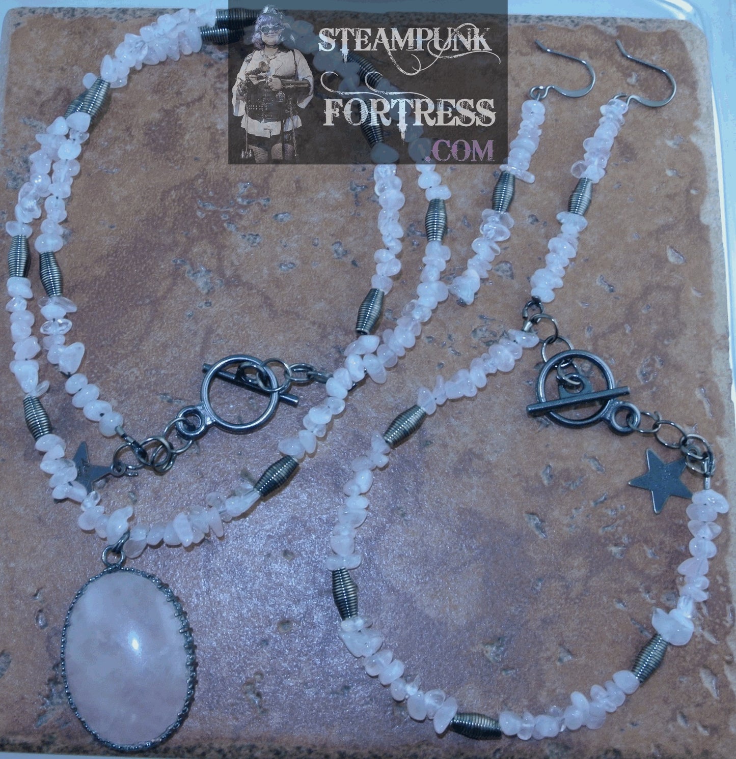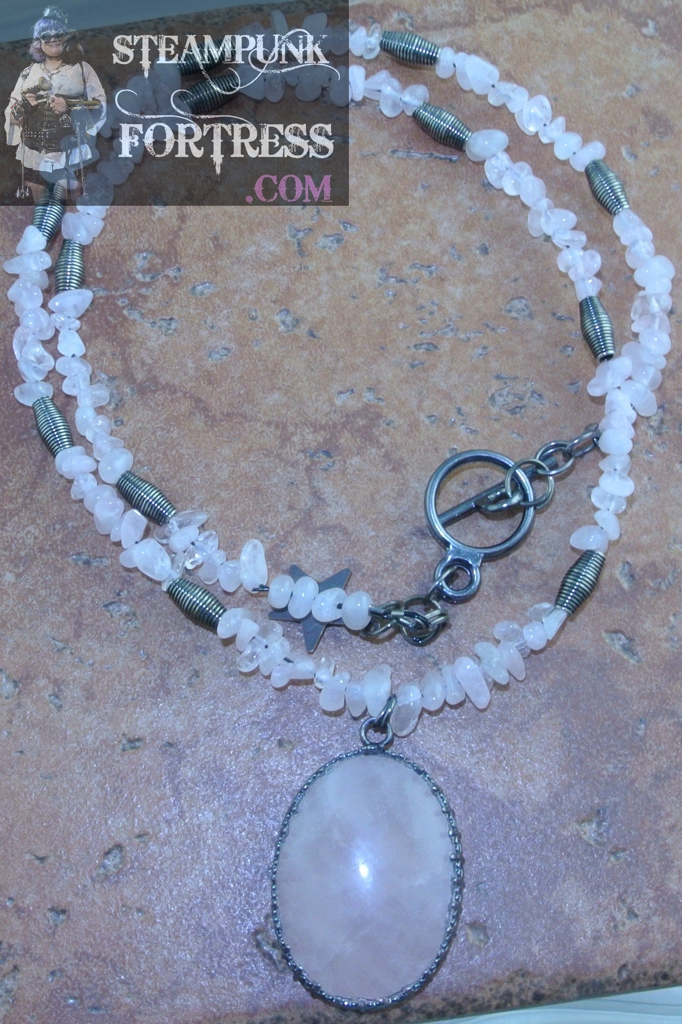 GUNMETAL ROSE QUARTZ GEMSTONES STONES CHIPS SPRINGS FOCAL NECKLACE SET AVAILABLE STARR WILDE STEAMPUNK FORTRESS