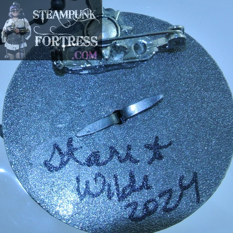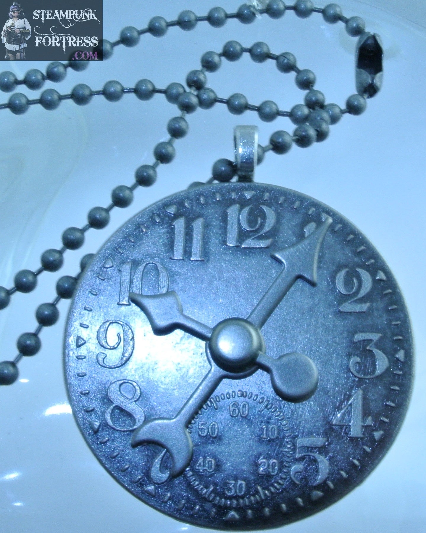 GUNMETAL SILVER CLOCK WATCH FACE DIAL 2 MOVEABLE HANDS PIN BROOCH NECKLACE STARR WILDE STEAMPUNK FORTRESS