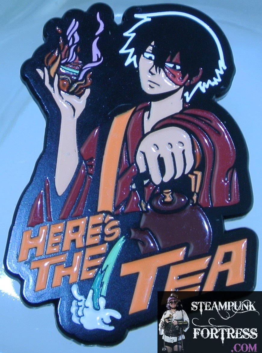 This is a beautiful gunmetal enamel pin featuring anime? manga? character saying Here's the Tea..back has 2021 Viacom on it so not sure what show they belong to....#7099
