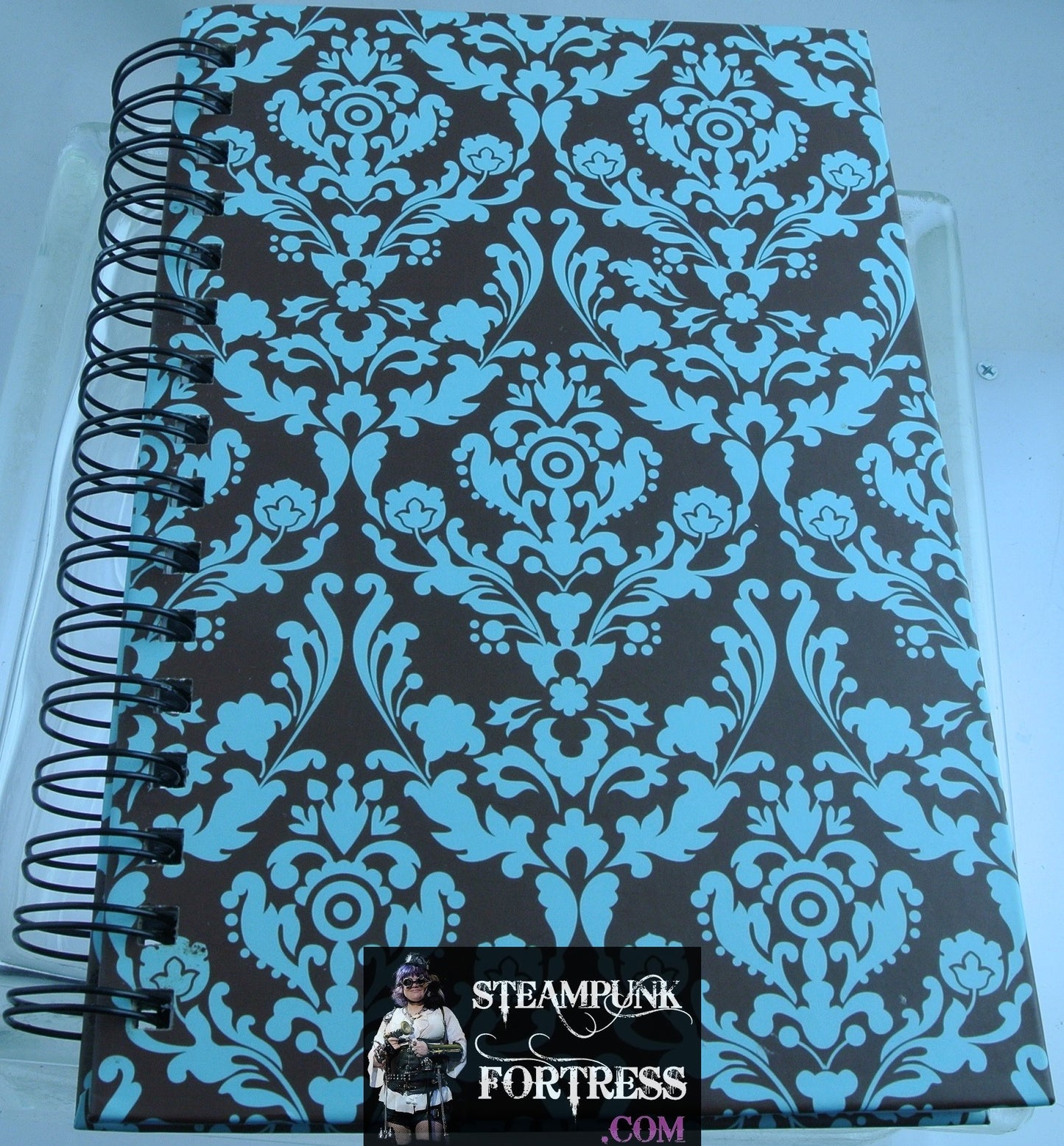NOTEBOOK SPIRAL HARDCOVER BLUE BROWN PAISLEY 190 LINED PAGES TOTAL
