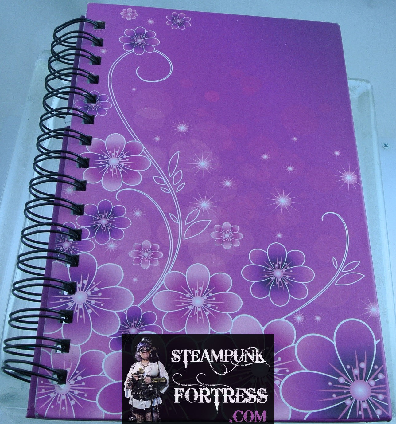 NOTEBOOK SPIRAL HARDCOVER PURPLE LAVENDER FLOWERS 118 LINED PAGES TOTAL
