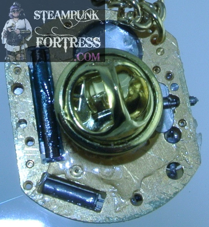 PIN BROOCH GOLD POLJET GENUINE AUTHENTIC WATCH CLOCK MOVEMENT SMALL NECKLACE COMPLETE MULTI USE VERSATILE STARR WILDE STEAMPUNK FORTRESS