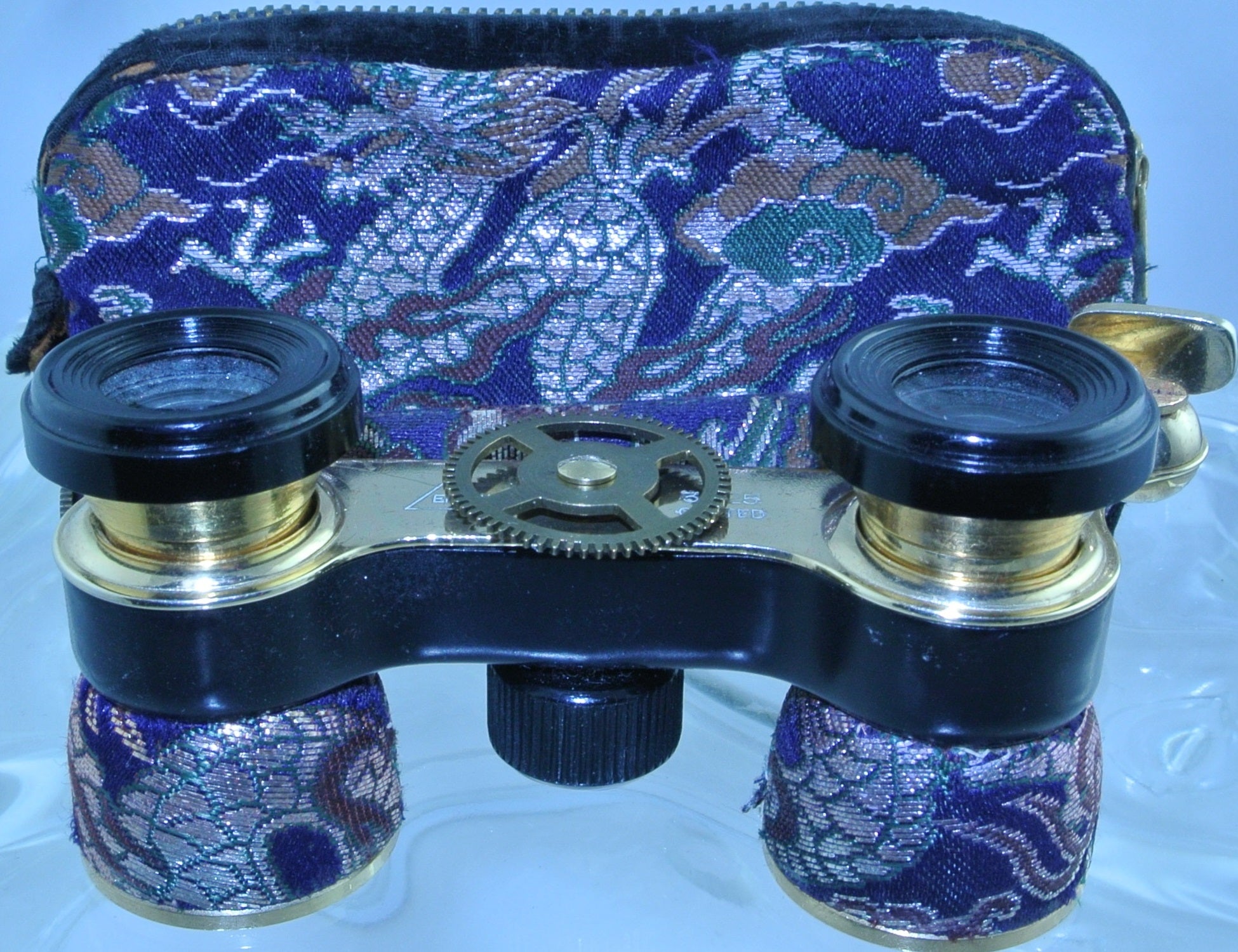 ****ULTRA RARE**** VINTAGE PURPLE HELIOTROPE FABRIC EXTENDING HANDLE BRASS WATCH CLOCK GEAR BINOCULARS OPERA GLASSES WITH CASE STARR WILDE STEAMPUNK FORTRESS