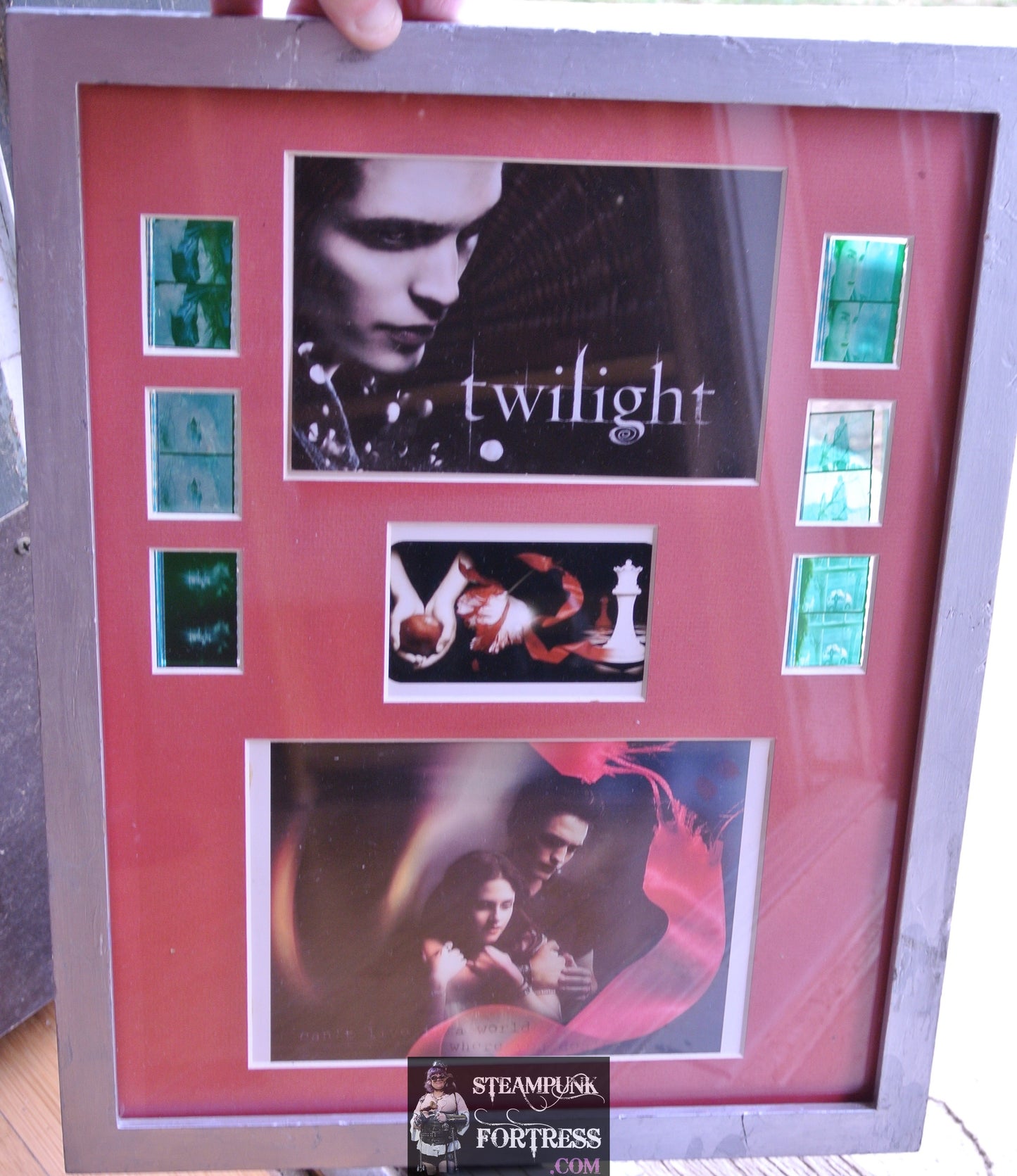 THIS IS A FABULOUS GORGEOUS VINTAGE TWILIGHT COLLAGE GENUINE FILM CELLS AND PHOTOS FRAMED AND MATTED OF EDWARD BELLA BOOK COVERS RED RIBBON...IN DOUBLE GLASS FRAME SO YOU CAN SEE THE FILM CELLS...IF YOU WOULD LIKE TO BUY WITHOUT FRAME IT WILL BE LESS EXPENSIVE SO LET ME KNOW IF YOU JUST WANT THE MATTED FILM CELLS AND PHOTOS...#4127