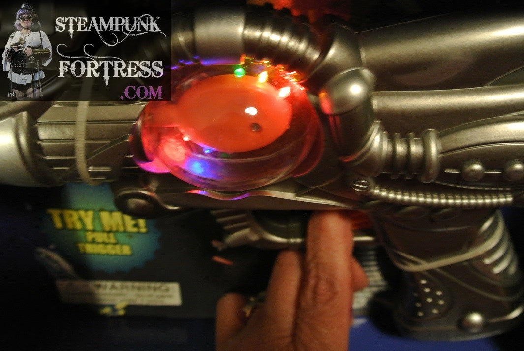 RAY GUN SPACE PATROL BLASTER SILVER ORANGE LIGHTS UP LIGHT SOUNDS NEW STEAMPUNK COSPLAY COSTUME