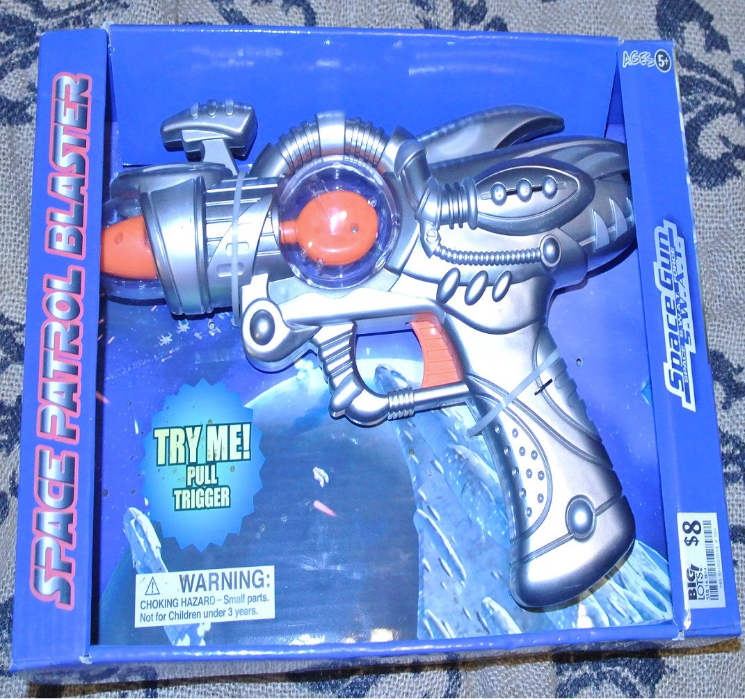 THIS IS A GORGEOUS SILVER AND ORANGE SPACE PATROL BLASTER RAY GUN...LIGHTS UP AND SOUNDS...STEAMPUNK COSPLAY COSTUME...NEW IN BOX..#7576