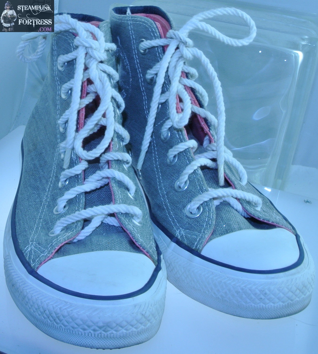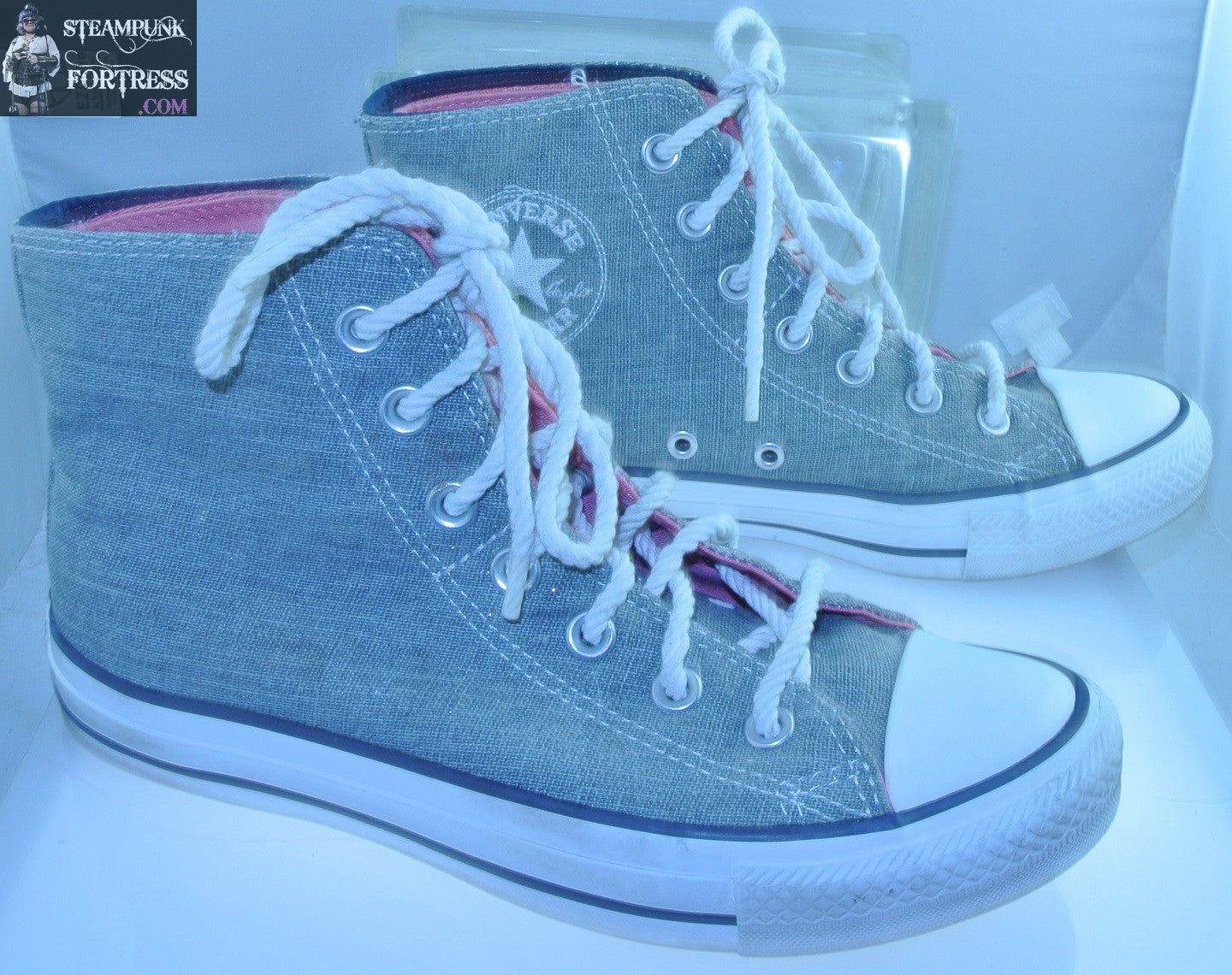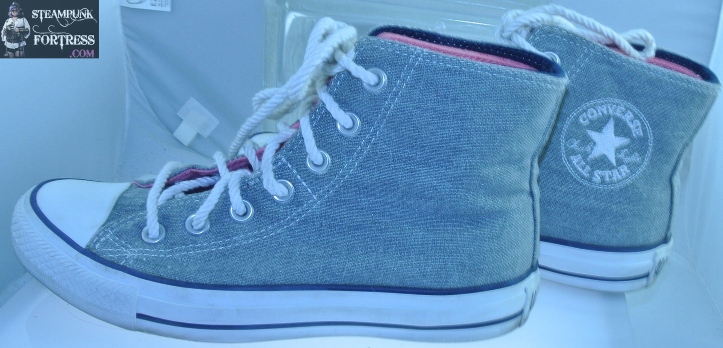 SHOES CONVERSE HIGH TOP HI TOPS GREY MEDIUM PINK DOUBLE INSERT BOAT TIES MENS 5 WOMENS SIZE 7 VINTAGE PRE-OWNED
