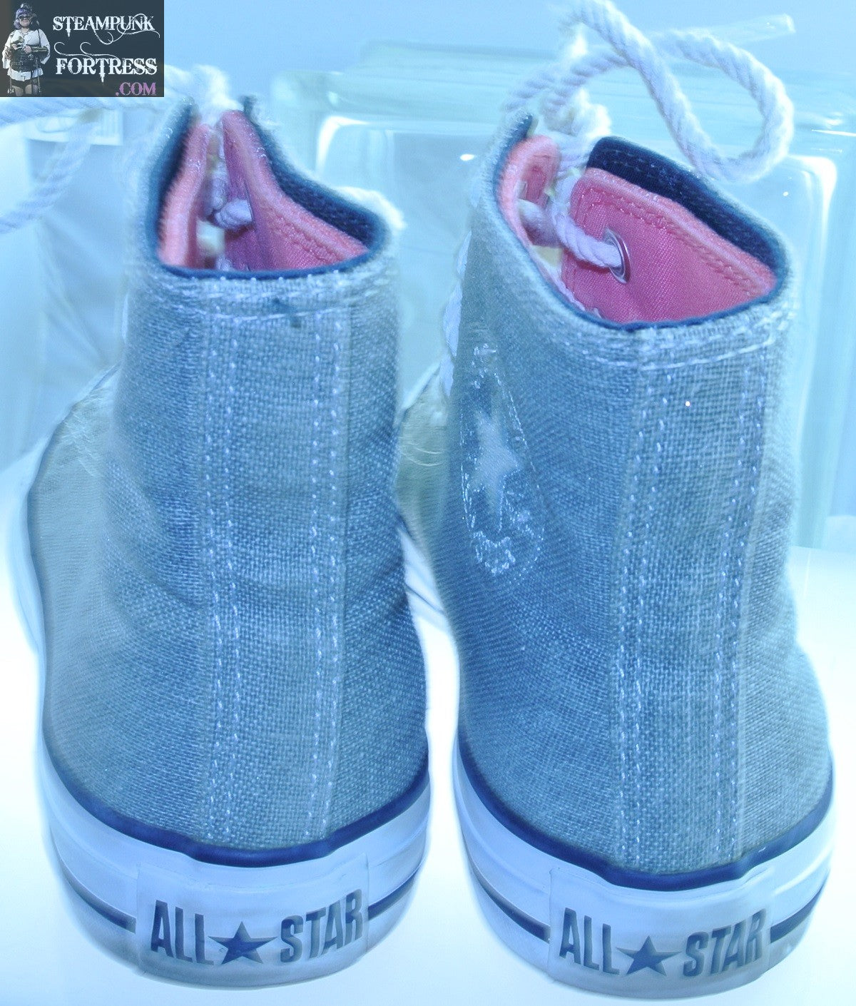 THIS IS A FABULOUS SHOES CONVERSE HIGH TOPS VINTAGE GREY GRAY WITH MEDIUM PINK ACCENTS DOUBLE INSERTS...I WORE THESE ONLY ON SPECIAL OCCASIONS BOAT TIES......ALL STAR CHUCK TAYLORS....#7517