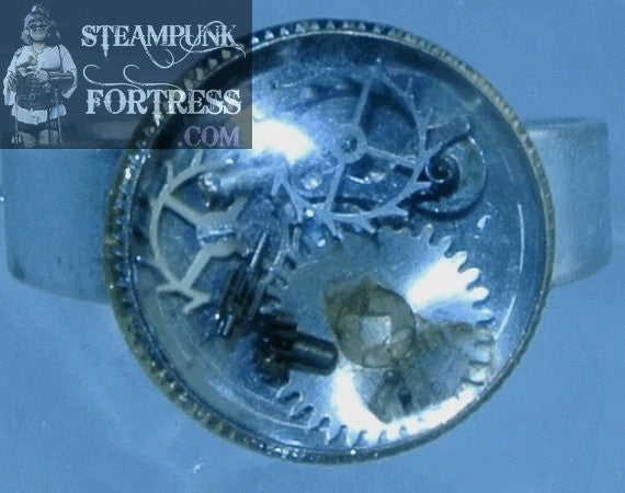 SILVER .5" OPEN SPOKE GEARS RIVETS AUTHENTIC GENUINE WATCH CLOCK CASE ADJUSTABLE RING STARR WILDE STEAMPUNK FORTRESS