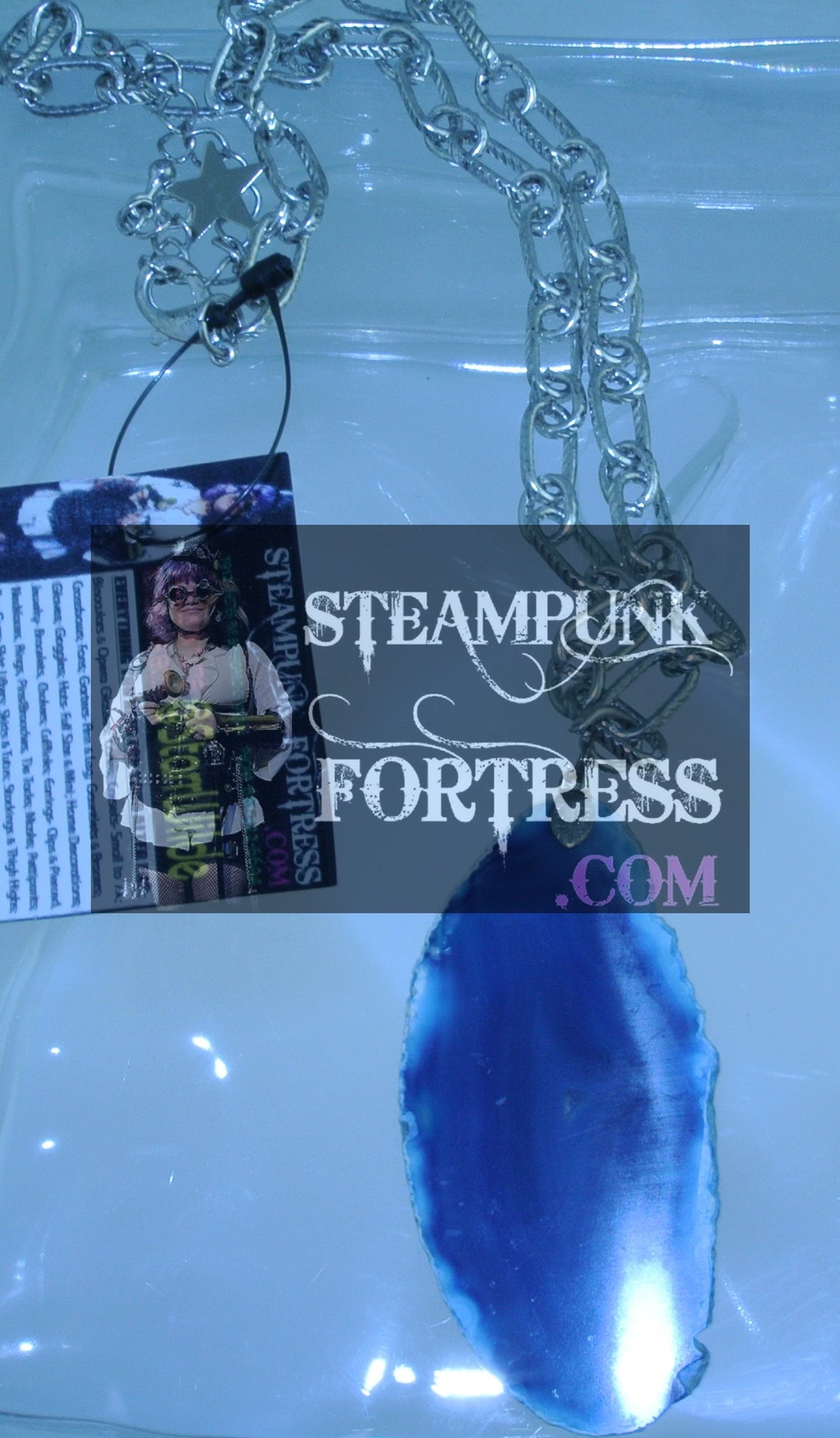 SILVER AGATE BLUE SLAB GEMSTONE STONE AUTHENTIC GENUINE CLOCK WATCH MOVEMENT 2 SIDED NECKLACE STARR WILDE STEAMPUNK FORTRESS REVERSIBLE