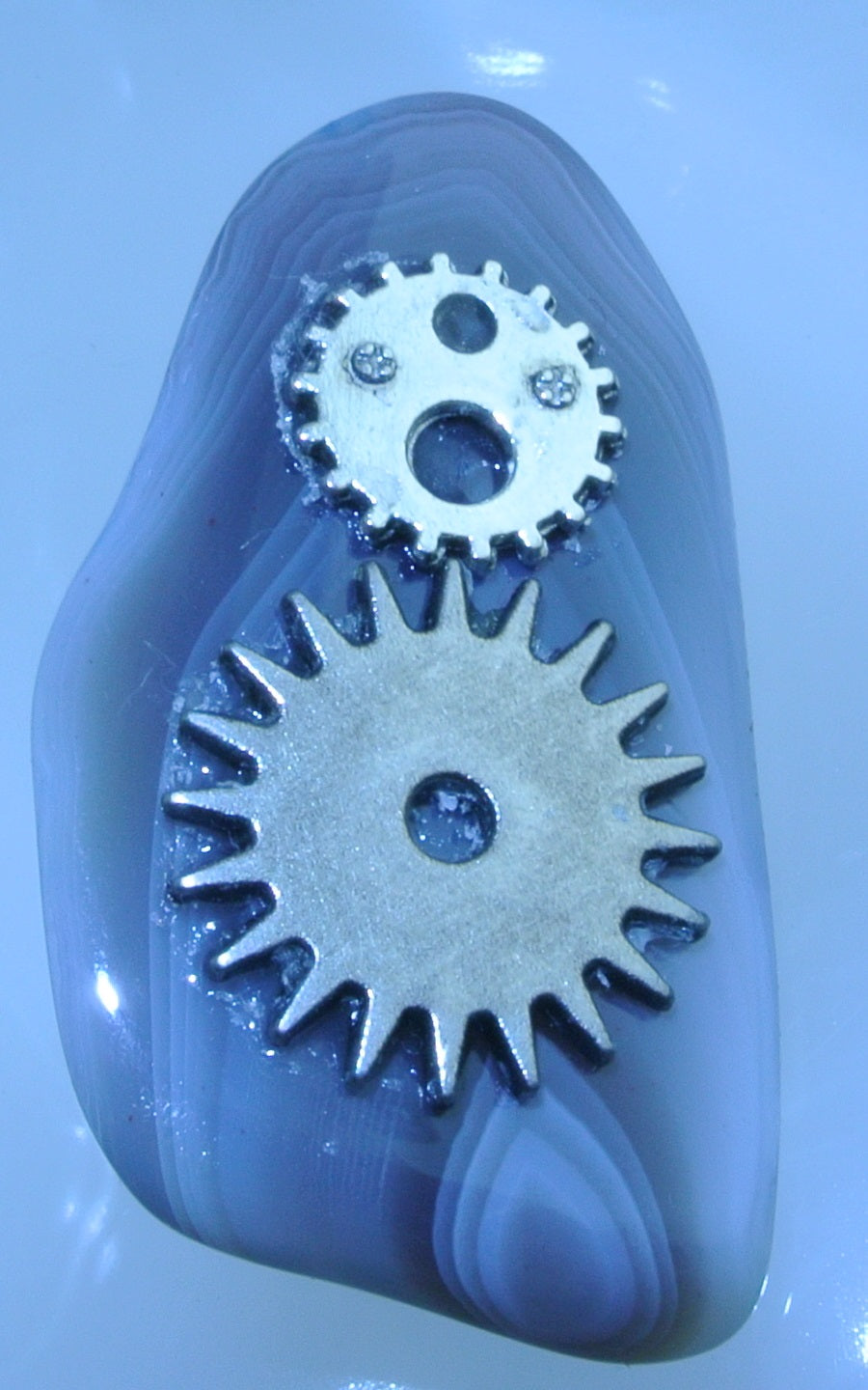 SILVER AGATE GEMSTONE 2 SILVER GEARS PIN BROOCH STARR WILDE STEAMPUNK FORTRESS