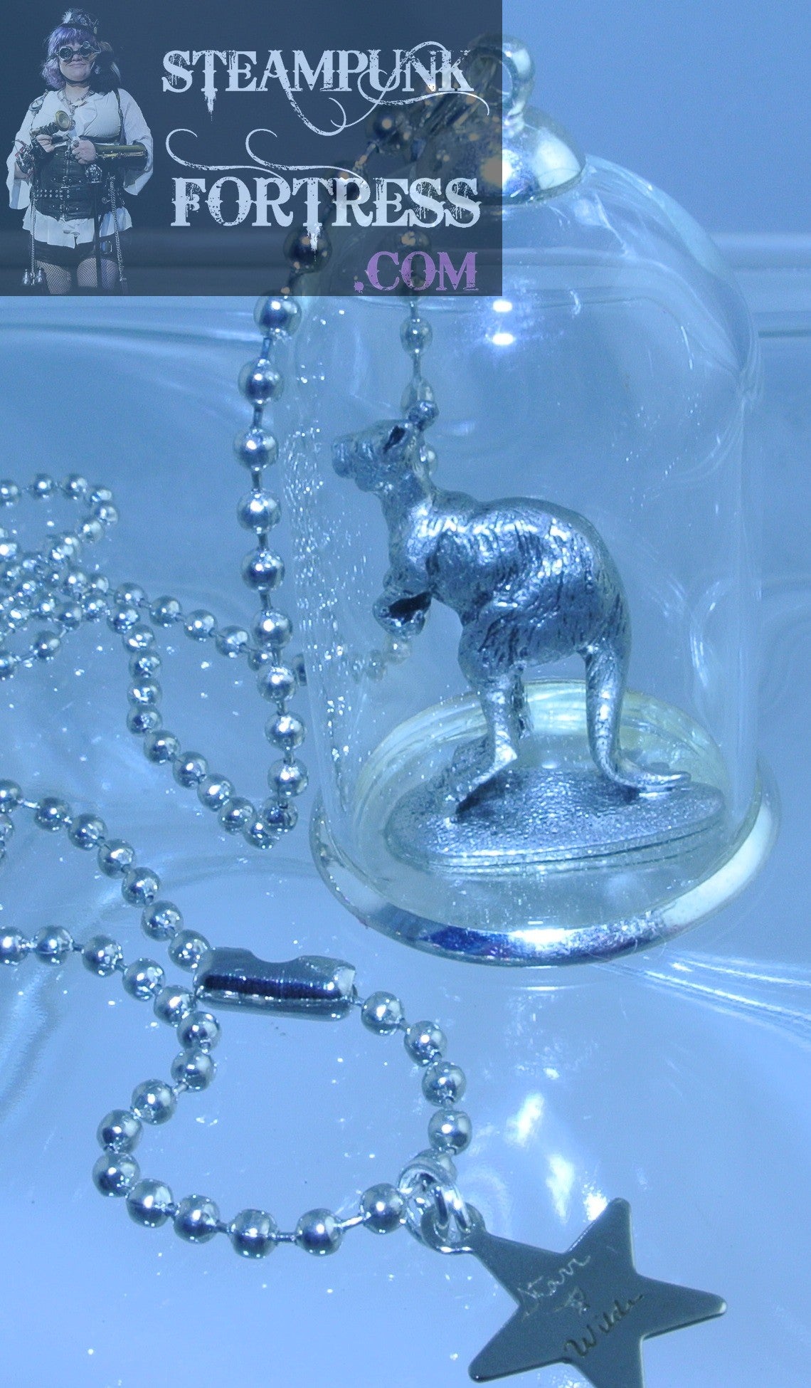 SILVER DOME KANGAROO TOKEN UNDER GLASS NECKLACE STARR WILDE STEAMPUNK FORTRESS