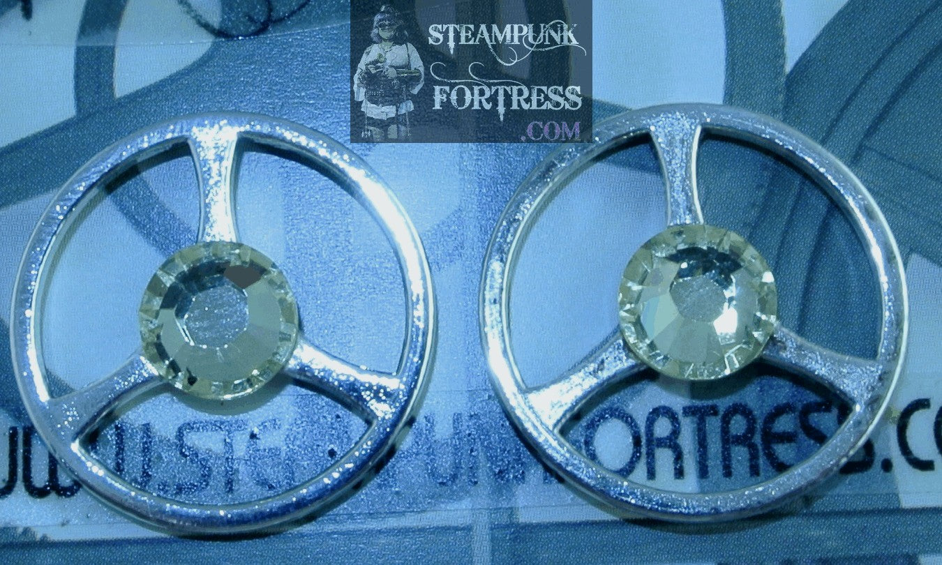 SILVER GEARS 3 ARM 7MM JONQUIL YELLOW SWAROVSKI CRYSTALS STUDS WATCH CLOCK PIERCED EARRINGS STARR WILDE STEAMPUNK FORTRESS