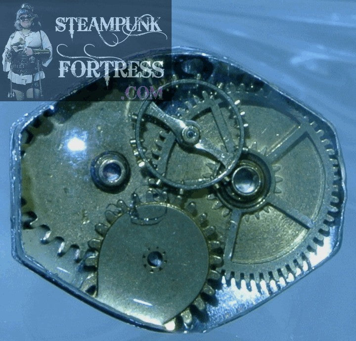 SILVER HEX #7 GOLD GEARS AUTHENTIC GENUINE WATCH CLOCK CASE ADJUSTABLE RING STARR WILDE STEAMPUNK FORTRESS
