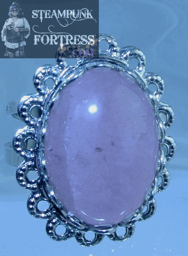 SILVER JADE GEMSTONE PINK #4 LACE EDGE ADJUSTABLE RING STONES STARR WILDE STEAMPUNK FORTRESS