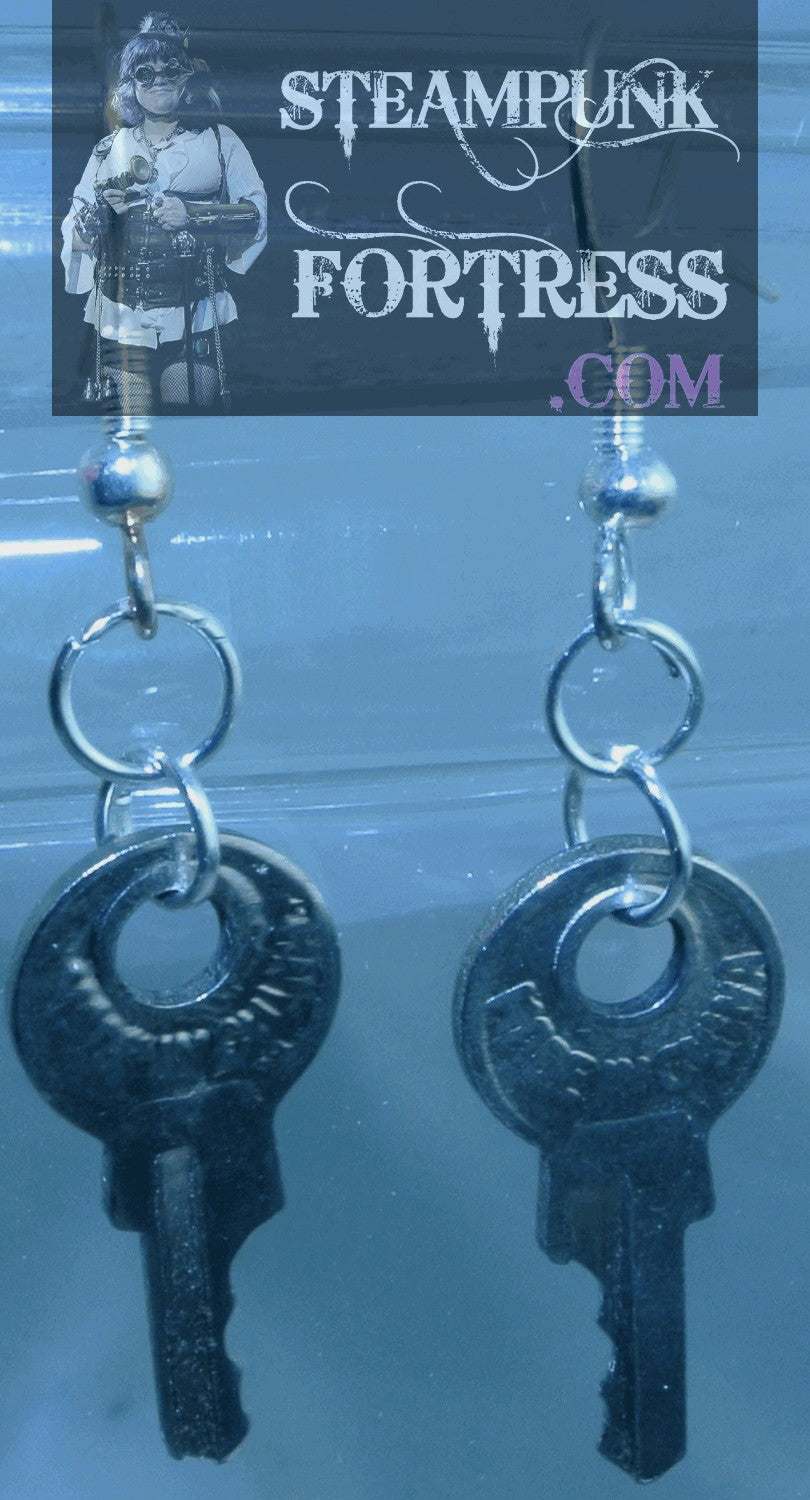 SILVER KEYS MADE IN CHINA SMALL PIERCED EARRINGS REAL AUTHENTIC GENUINE STARR WILDE STEAMPUNK FORTRESS
