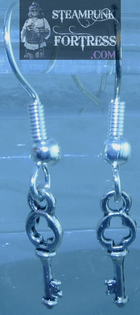 SILVER KEYS TINY PIERCED EARRINGS STARR WILDE STEAMPUNK FORTRESS