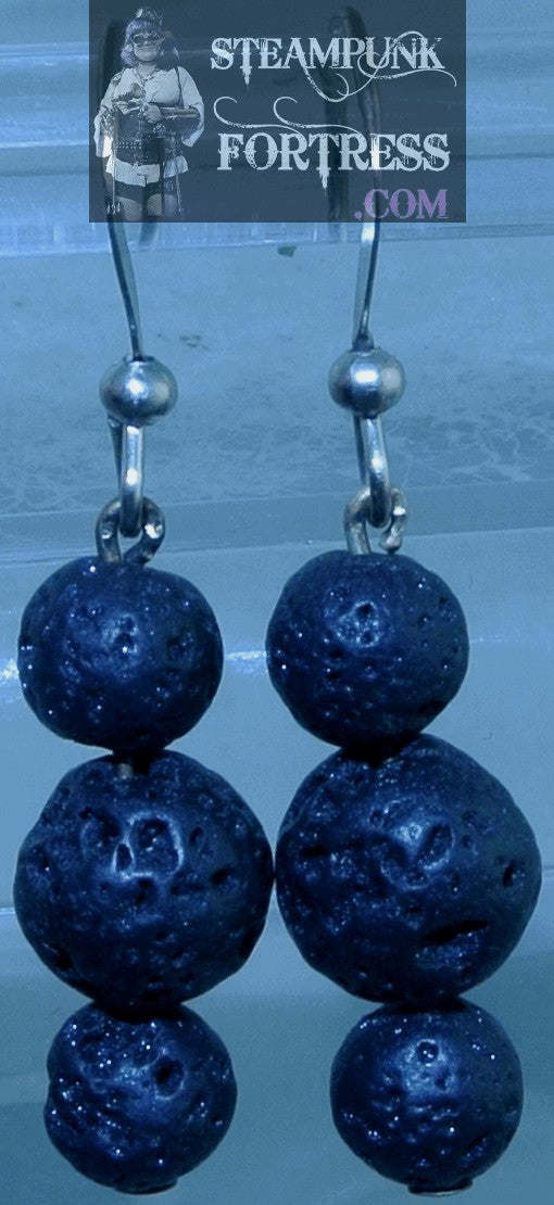 THIS IS A FABULOUS HANDMADE CUSTOM MADE STEAMPUNK DIESELPUNK CYBERPUNK, MEDIEVAL, RENAISSANCE, VICTORIAN, RENAISSANCE, EDWARDIAN, COSPLAY, COSTUME, SDCC, COMIC CON…..PIERCED EARRINGS...SILVER TONE...3 LAVA ROCK ROUNDS ON EACH HOOK...#3173