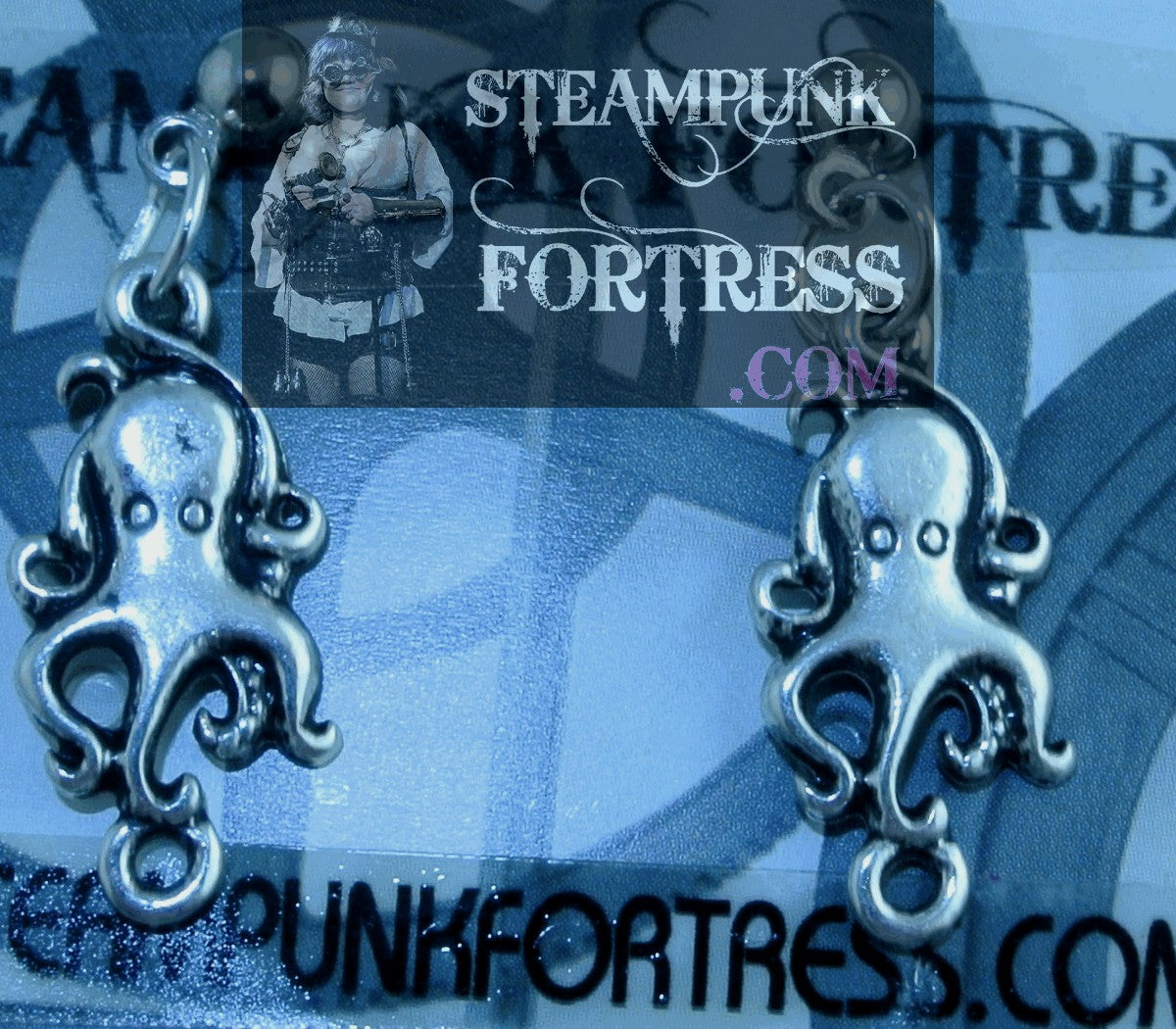 THIS IS A FABULOUS HANDMADE CUSTOM MADE STEAMPUNK DIESELPUNK CYBERPUNK, MEDIEVAL, RENAISSANCE, VICTORIAN, RENAISSANCE, EDWARDIAN, COSPLAY, COSTUME, SDCC, COMIC CON…..PIERCED EARRINGS.....SILVER TONE....1 SILVER TONE SMALL DOUBLE LINK OCTOPUS ON EACH STUD.......#6160