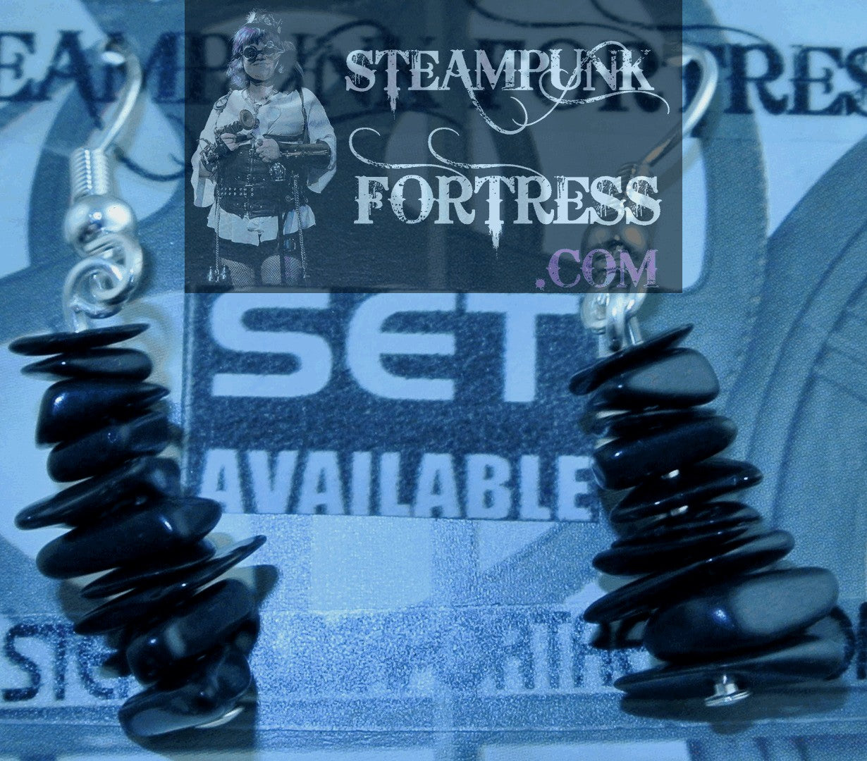 THIS IS A FABULOUS HANDMADE CUSTOM MADE STEAMPUNK DIESELPUNK CYBERPUNK, MEDIEVAL, RENAISSANCE, VICTORIAN, RENAISSANCE, EDWARDIAN, COSPLAY COSTUME COMIC CON….PIERCED EARRINGS....SILVER TONE.....10 ONYX GEMSTONE CHIPS ON EACH HOOK.......#6322