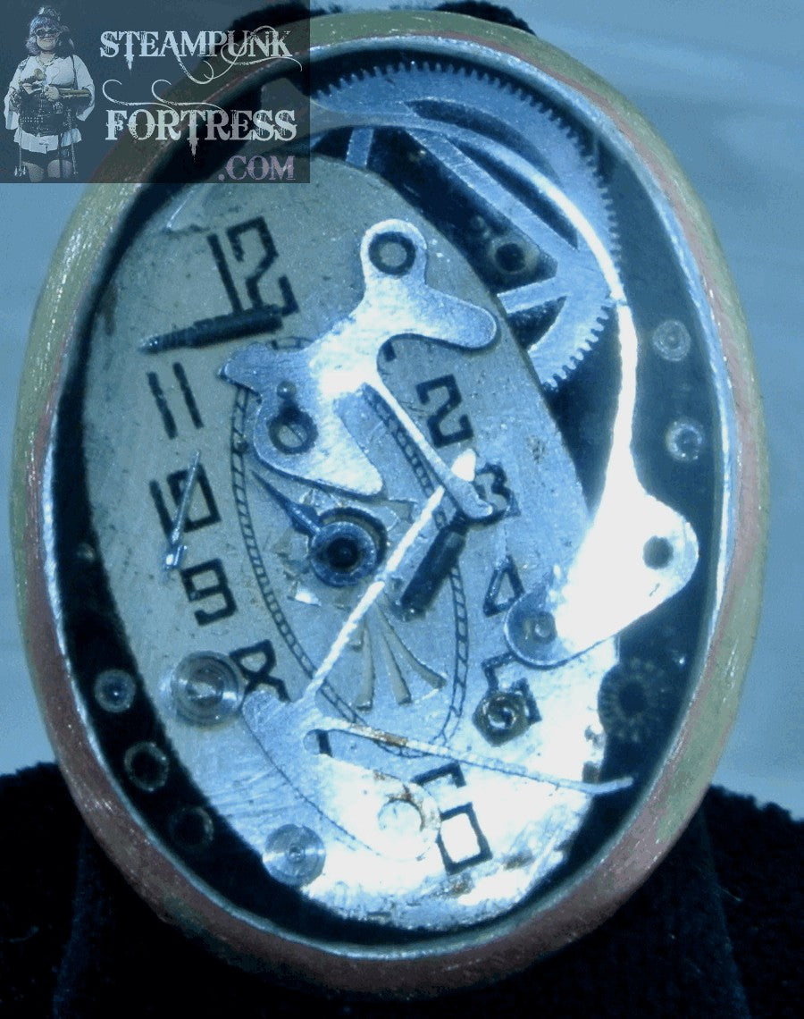 SILVER OVAL 20MM X 25MM BLACK BASE GEARS DIAL FACE AUTHENTIC GENUINE WATCH CLOCK COPPER EDGE ADJUSTABLE RING STARR WILDE STEAMPUNK FORTRESS