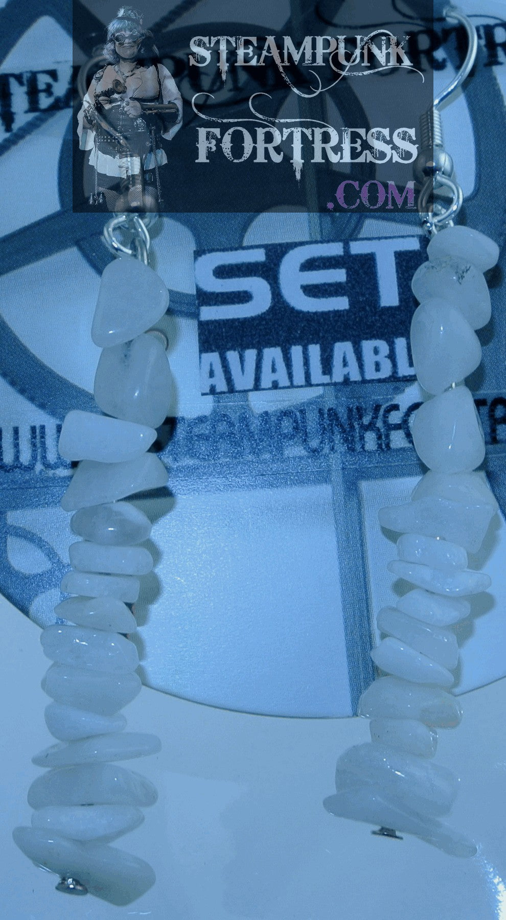 THIS IS A FABULOUS HANDMADE CUSTOM MADE STEAMPUNK DIESELPUNK CYBERPUNK, MEDIEVAL, RENAISSANCE, VICTORIAN, RENAISSANCE, EDWARDIAN, COSPLAY COSTUME COMIC CON….IERCED EARRINGS...SILVER TONE......15 SNOW QUARTZ  GEMSTONE CHIPS ON EACH HOOK.......#6217