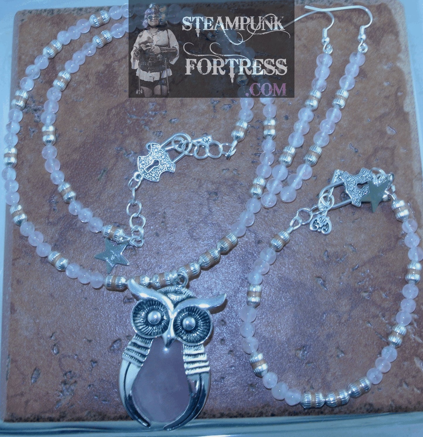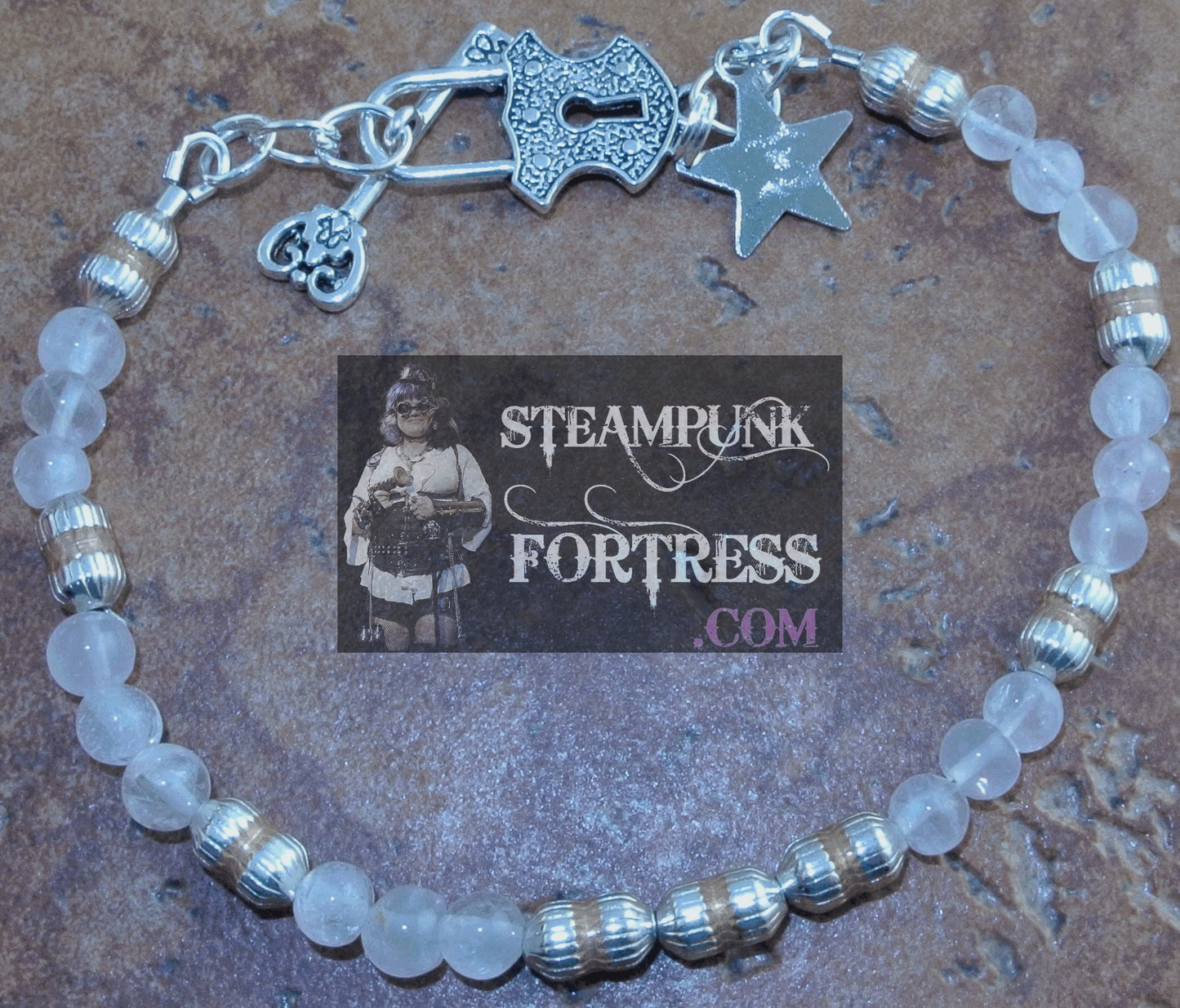 SILVER ROSE QUARTZ GEMSTONES STONES ROUNDS SILVER PINK RIBBED BEADS BRACELET SET AVAILABLE STARR WILDE STEAMPUNK FORTRESS