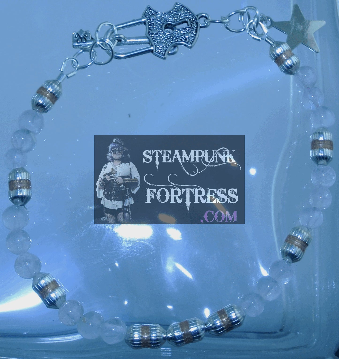 THIS IS A FABULOUS HANDMADE CUSTOM MADE STEAMPUNK DIESELPUNK CYBERPUNK, MEDIEVAL, RENAISSANCE, VICTORIAN, EDWARDIAN, COSPLAY, COSTUME, HALLOWEEN, SCA, SDCC, COMIC CON….SILVER TONE BRACELET....ROSE QUARTZ GEMSTONE ROUNDS AND SILVER PINK RIBBED BEADS...#1725