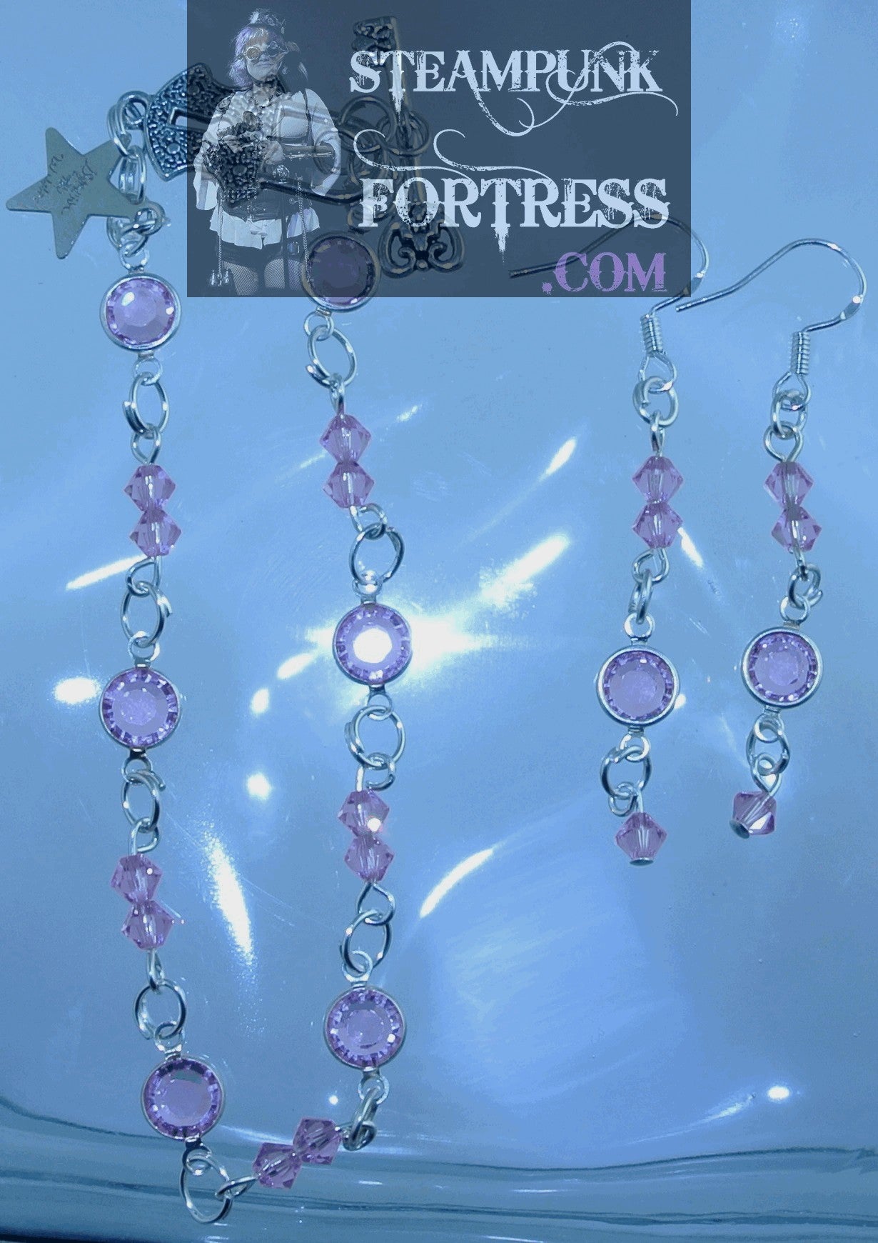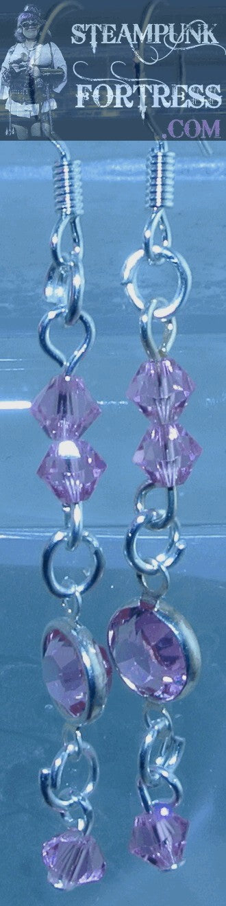 SILVER STERLING ROSE PINK LIGHT BICONES LINKS SWAROVSKI CRYSTALS PIERCED EARRINGS SET AVAILABLE STARR WILDE STEAMPUNK FORTRESS