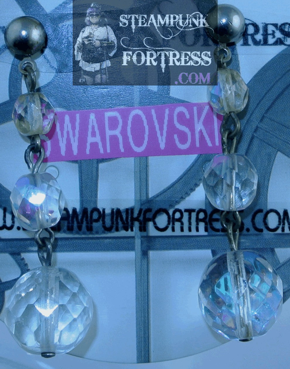THIS IS A FABULOUS HANDMADE CUSTOM MADE STEAMPUNK DIESELPUNK CYBERPUNK, MEDIEVAL, RENAISSANCE, VICTORIAN, RENAISSANCE, EDWARDIAN, COSPLAY, COSTUME, SDCC, COMIC CON…..SILVER TONE...3 GRADUATED FACETED CLEAR AURORA BOREALIS SWAROVSKI CRYSTALS ON EACH STUD....#4013