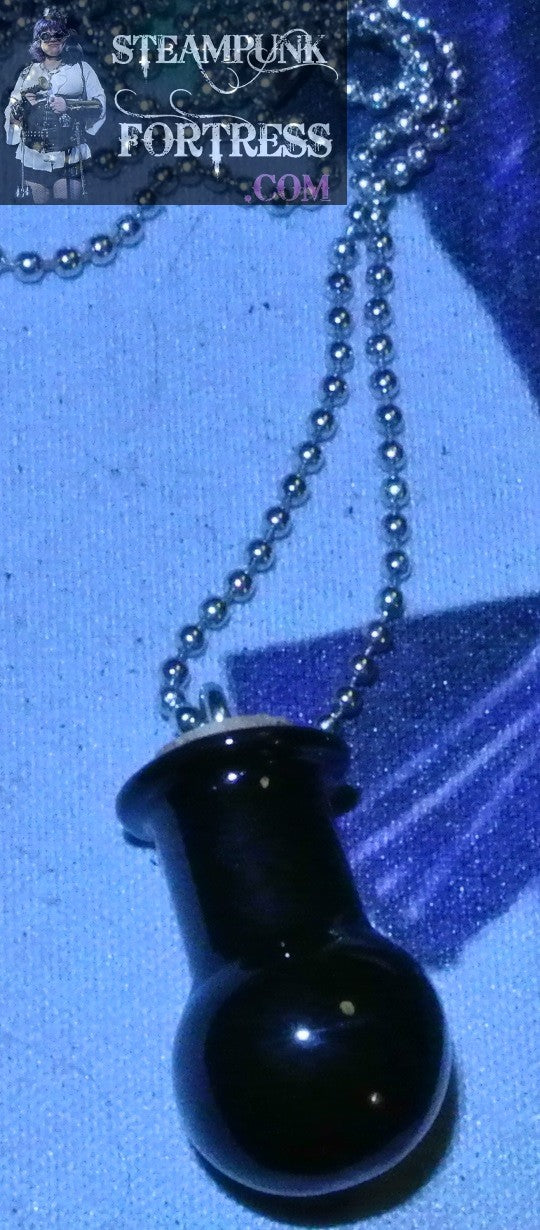 SILVER VIAL BLUE GLASS ROUND BOTTOM CORK TOP NECKLACE STARR WILDE STEAMPUNK FORTRESS