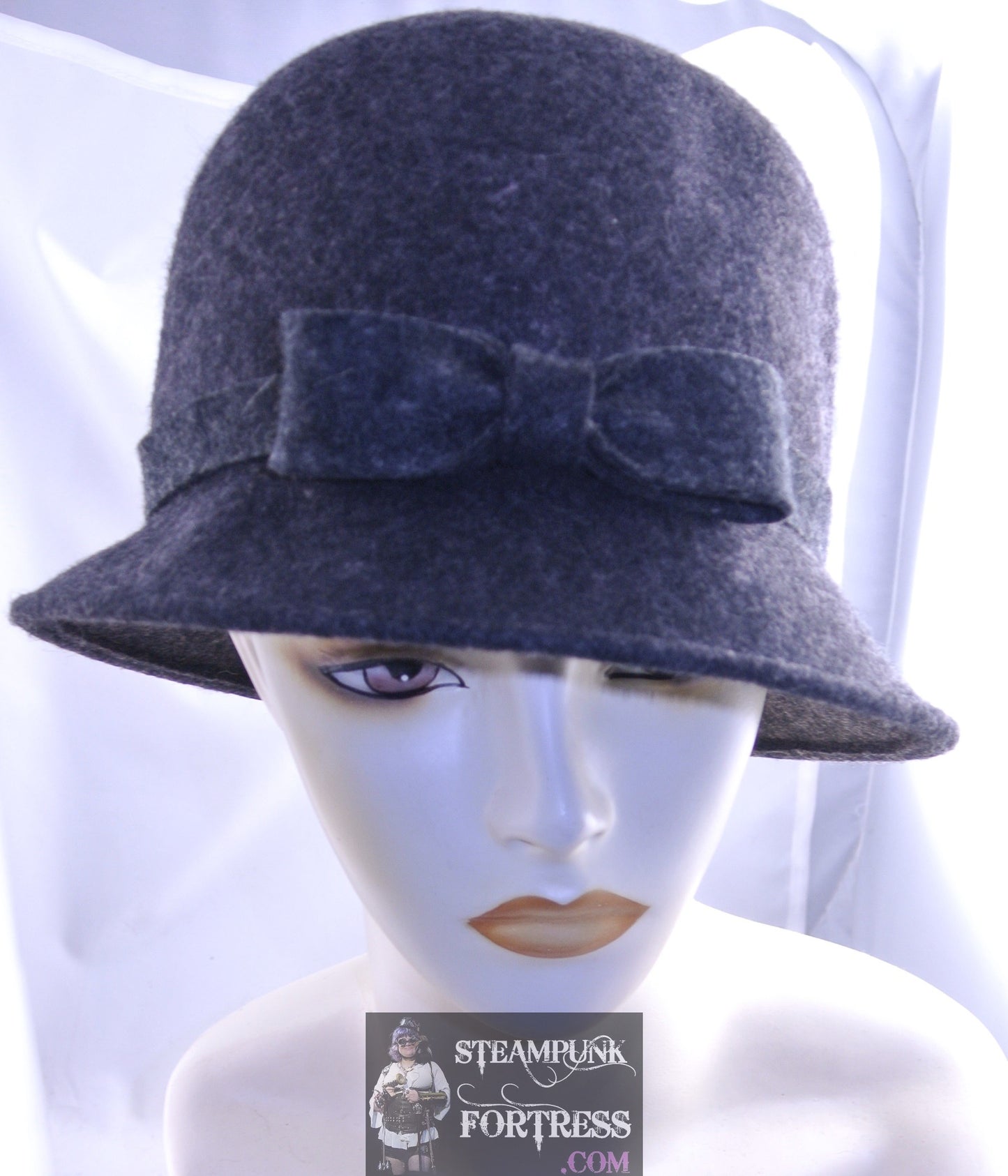 THIS IS A FABULOUS GORGEOUS VINTAGE TRIXIE WOOL GREY GRAY CLOCHE HAT WITH BOW SO CUTE....#2035