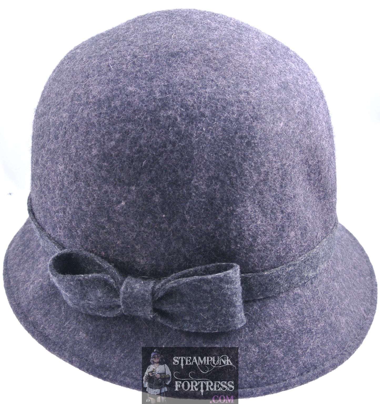 VINTAGE 1940S 1950S GREY GRAY TRIXIE WOOL BOW CLOCHE HAT SMALL BRIM