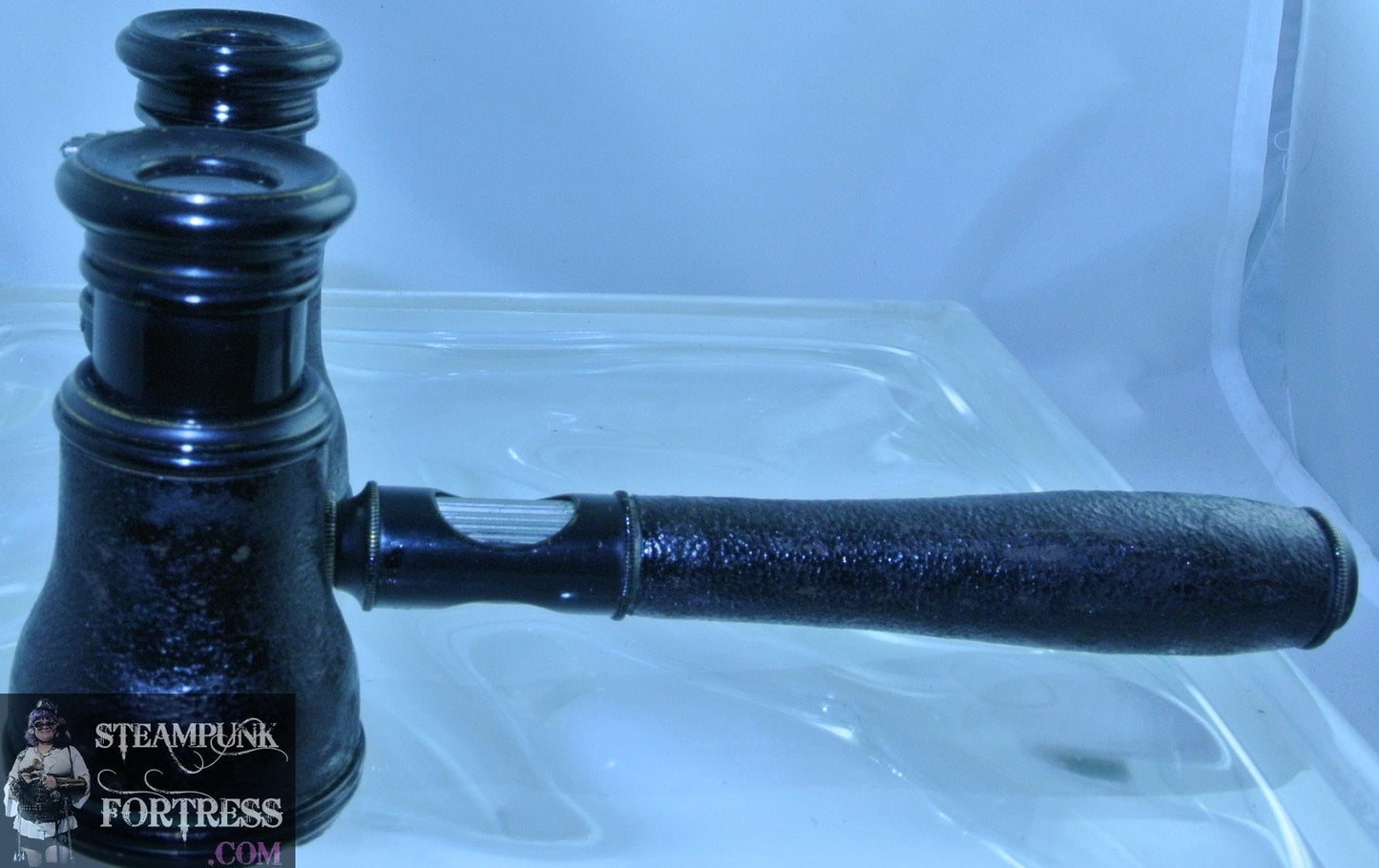 THIS IS A FABULOUS HANDMADE CUSTOM MADE STEAMPUNK DIESELPUNK CYBERPUNK, MEDIEVAL, RENAISSANCE, VICTORIAN, EDWARDIAN, COSPLAY, COSTUME, HALLOWEEN, SDCC, COMIC CON…BEAUTIFUL VINTAGE LEMAIRE BLACK LEATHER FIXED HANDLE BINOCULARS OPERA GLASSES I THINK LATE 19TH CENTURY PERHAPS...HAVE NOT SEEN ANOTHER LIKE THIS ONE....SILVER SPOKE GEAR THAT CAN BE REMOVED IF YOU WANT IT IN ORIGINAL CONDITION...#5802