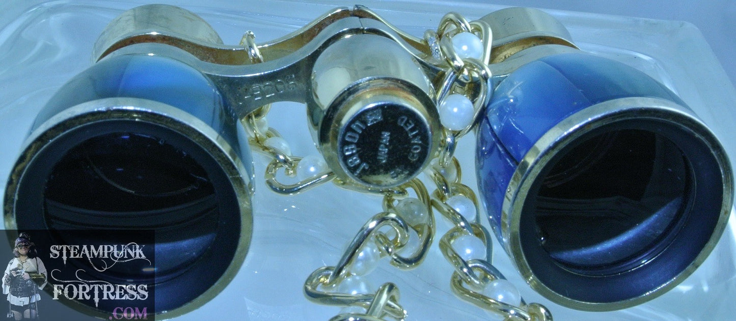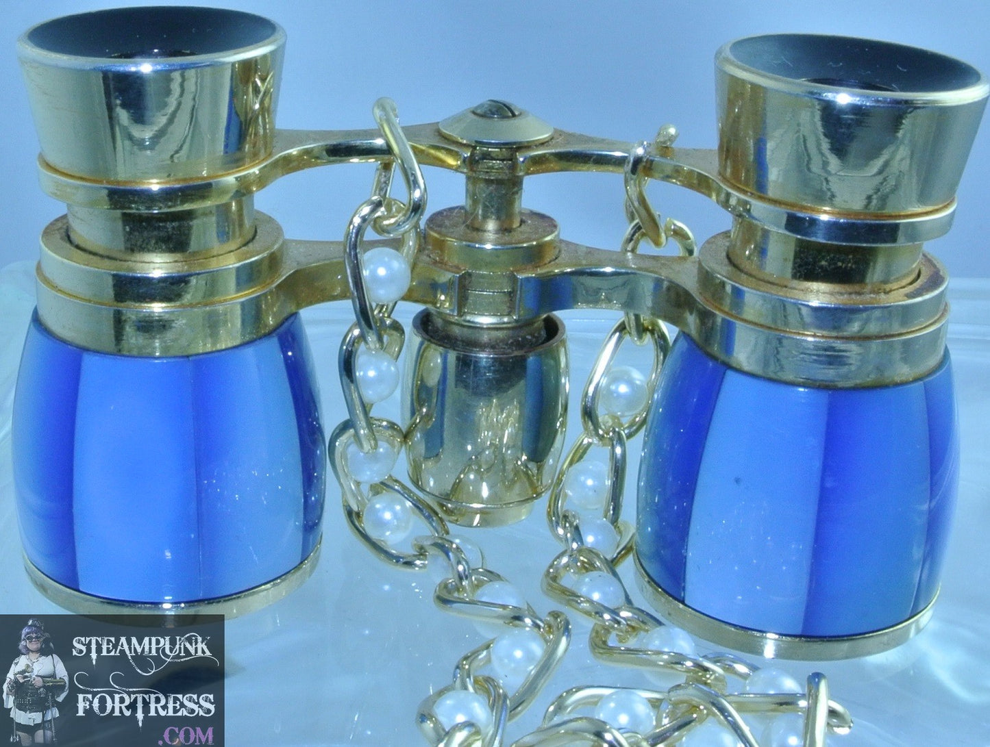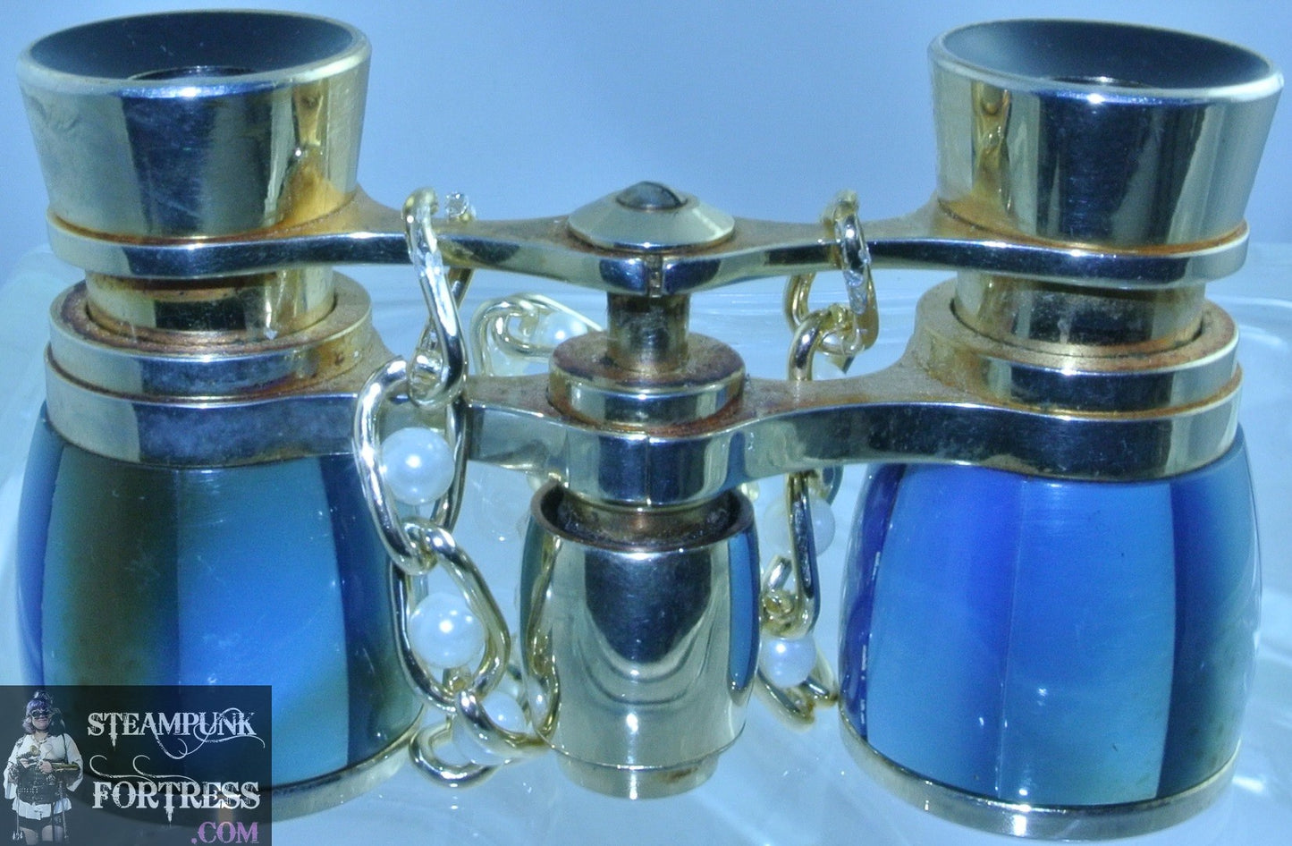 VINTAGE MOTHER OF PEARL MOP ABALONE JASON BINOCULARS OPERA GLASSES BLUE GOLD TRIM PEARL CHAIN STARR WILDE STEAMPUNK FORTRESS