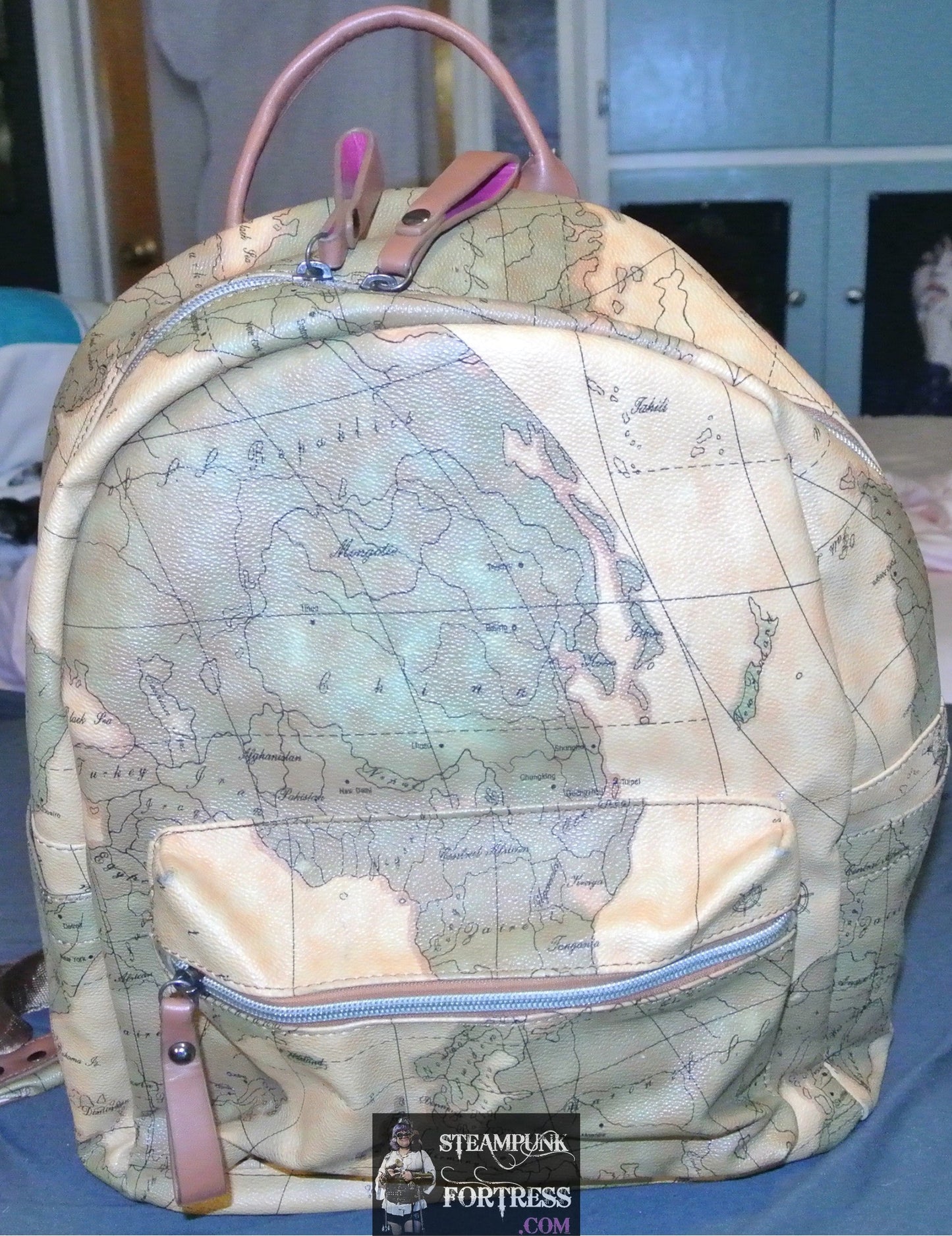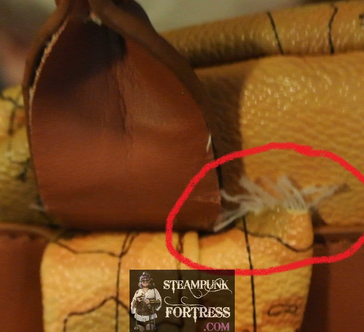 THIS IS AN AWESOME VINTAGE THEME STEAMPUNK CYBERPUNK DIESELPUNK MAPS BACKPACK PURSE TOTE BAG....1 OUTSIDE ZIP POCKET 4 SIDE POCKETS ZIP CLOSE 1 OPEN POCKET INSIDE ADJUSTABLE STRAPS...SMALL TEAR ON ONE STRAP NEEDS REPAIR...SEE PHOTOS...#7532