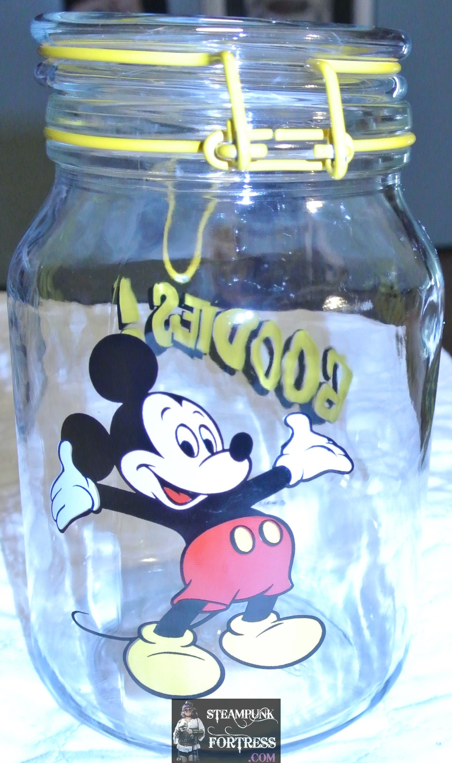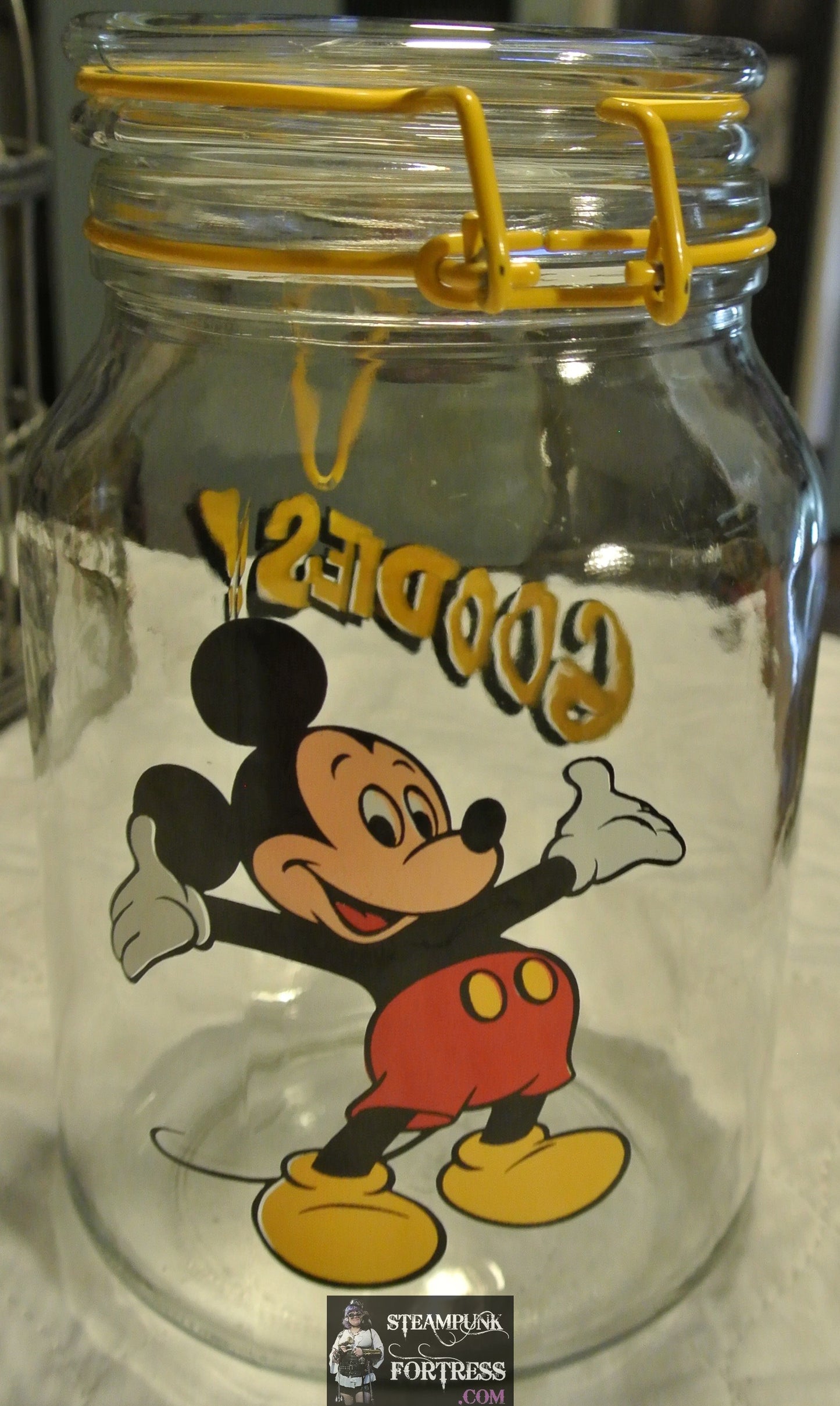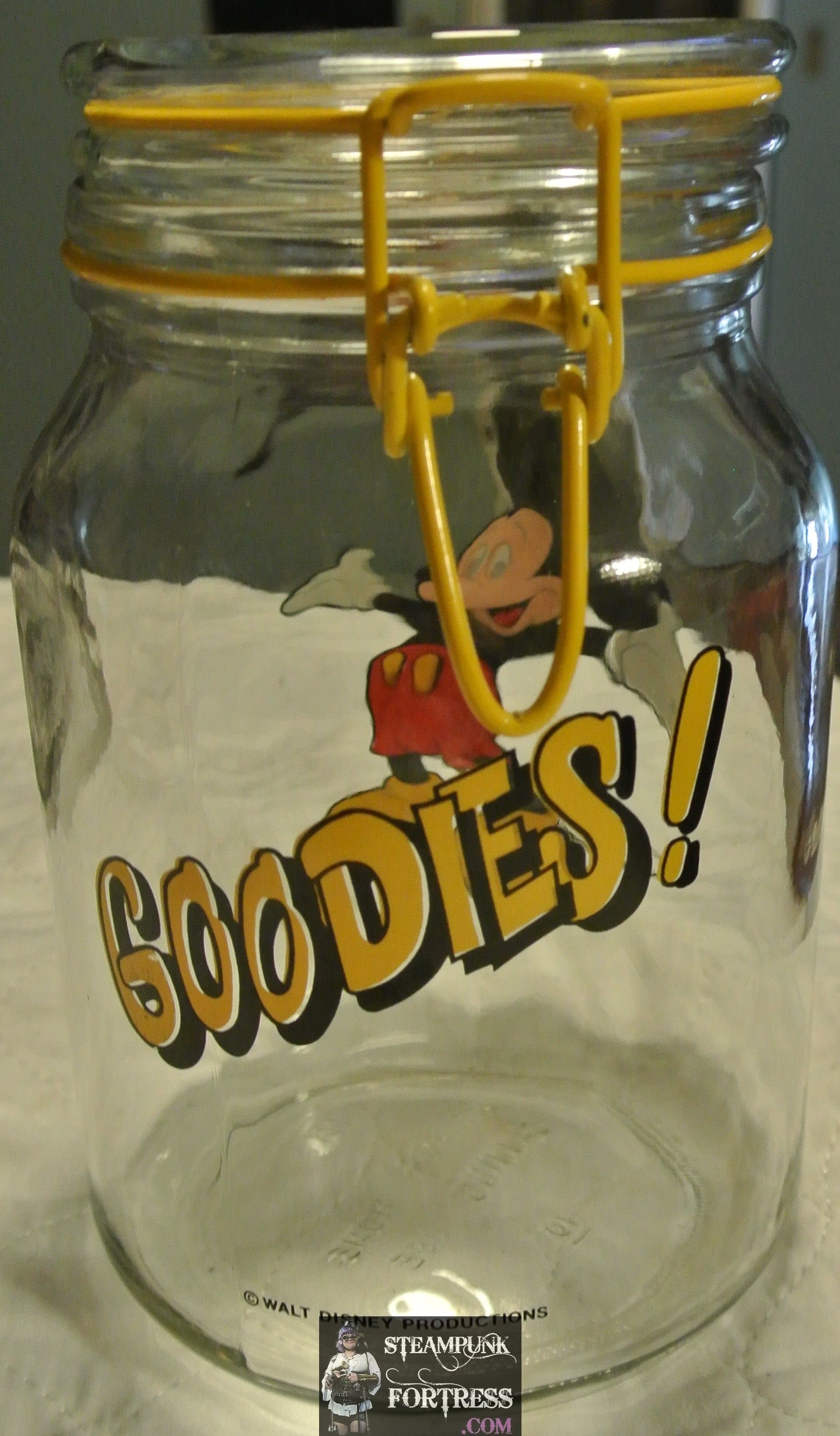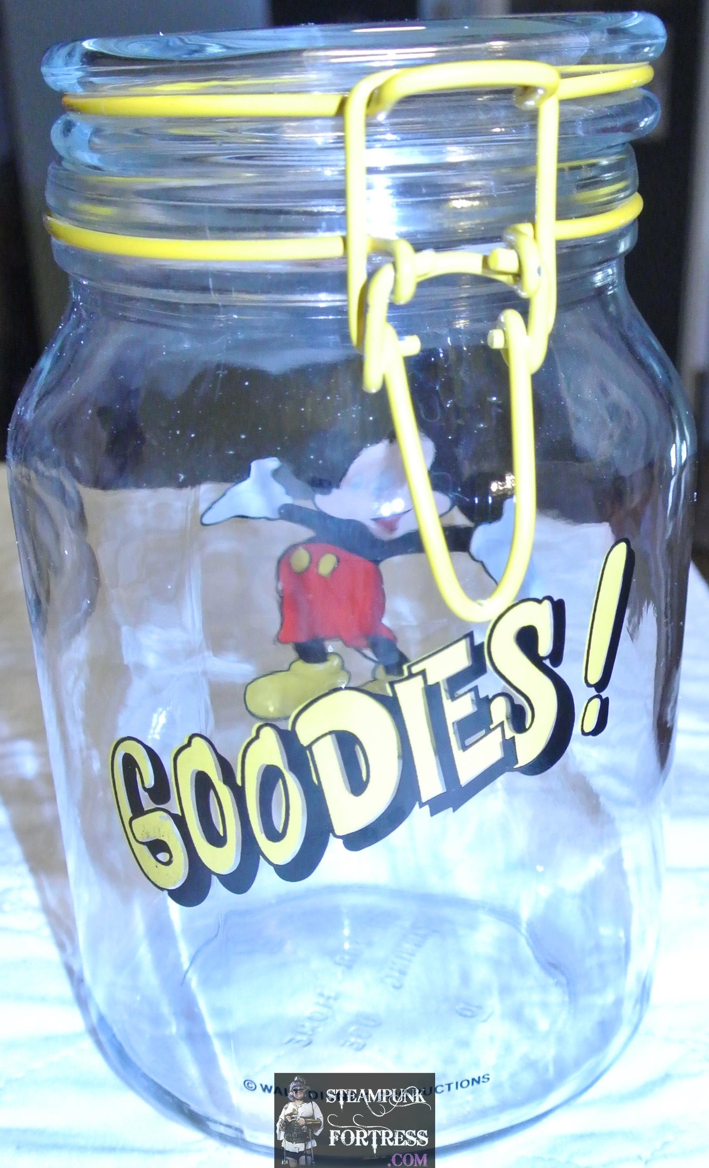 VINTAGE WALT DISNEY MICKEY MOUSE GOODIES COOKIE MASON JAR YELLOW CLOSURE OFFICIAL